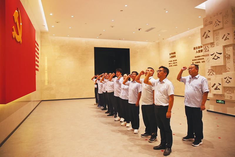 近日,中铁工业旗下中铁九桥北方区域项目管理中心党支部组织党员干部走进山东省廉政教育馆开展廉政教育参观学习,教育引领广大党员干部始终做到忠诚干净担当。图为重温入党誓词。 柏越 摄