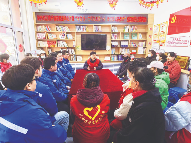 3月5日,中铁一局二公司沈阳市辽中项目部联合沈阳市辽中区新光社区共同开展“学雷锋 做贡献”主题活动,以实际行动弘扬雷锋精神。图为开设雷锋志愿活动社区课堂共同学习。姜禹 摄