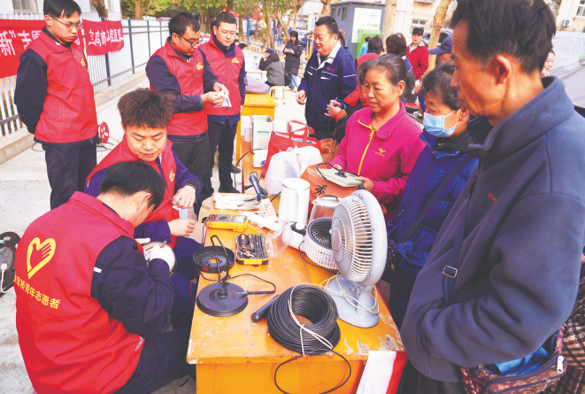 3月5日,中铁工业旗下中铁宝桥机电工程分公司的青年志愿者走进社区开展“家电维修进社区”主题活动,受到居民欢迎。 刘平 谢峥 摄影报道