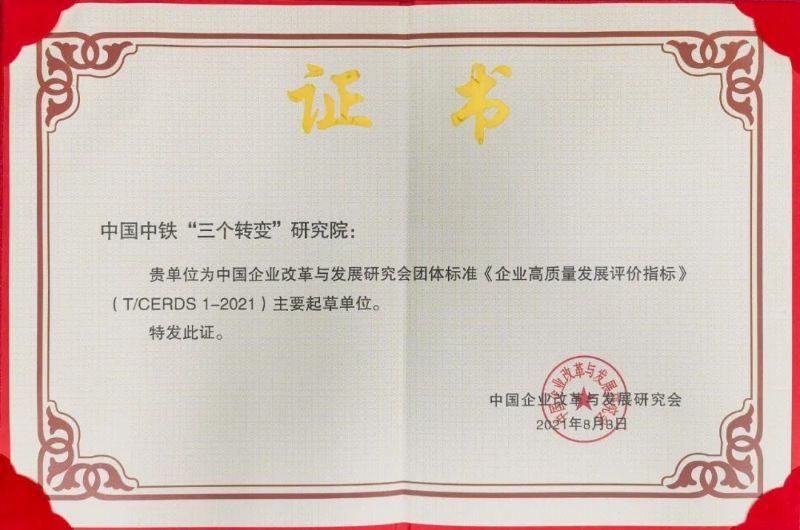 近日,由中国中铁“三个转变”研究院参与起草的《企业高质量发展评价指标》团体标准在京正式发布。