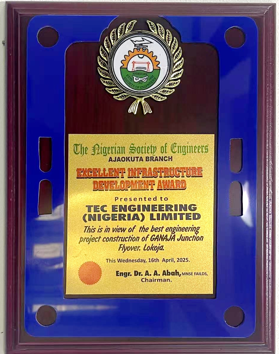 近日,尼日利亚工程师协会(NSE)授予中铁国际川铁国际尼日利亚公司“卓越基础设施建设成就奖”,表彰川铁国际尼日利亚公司在科吉州洛克贾城市立交桥项目建设中的贡献,这也是川铁国际尼日利亚公司第二次获此殊荣。