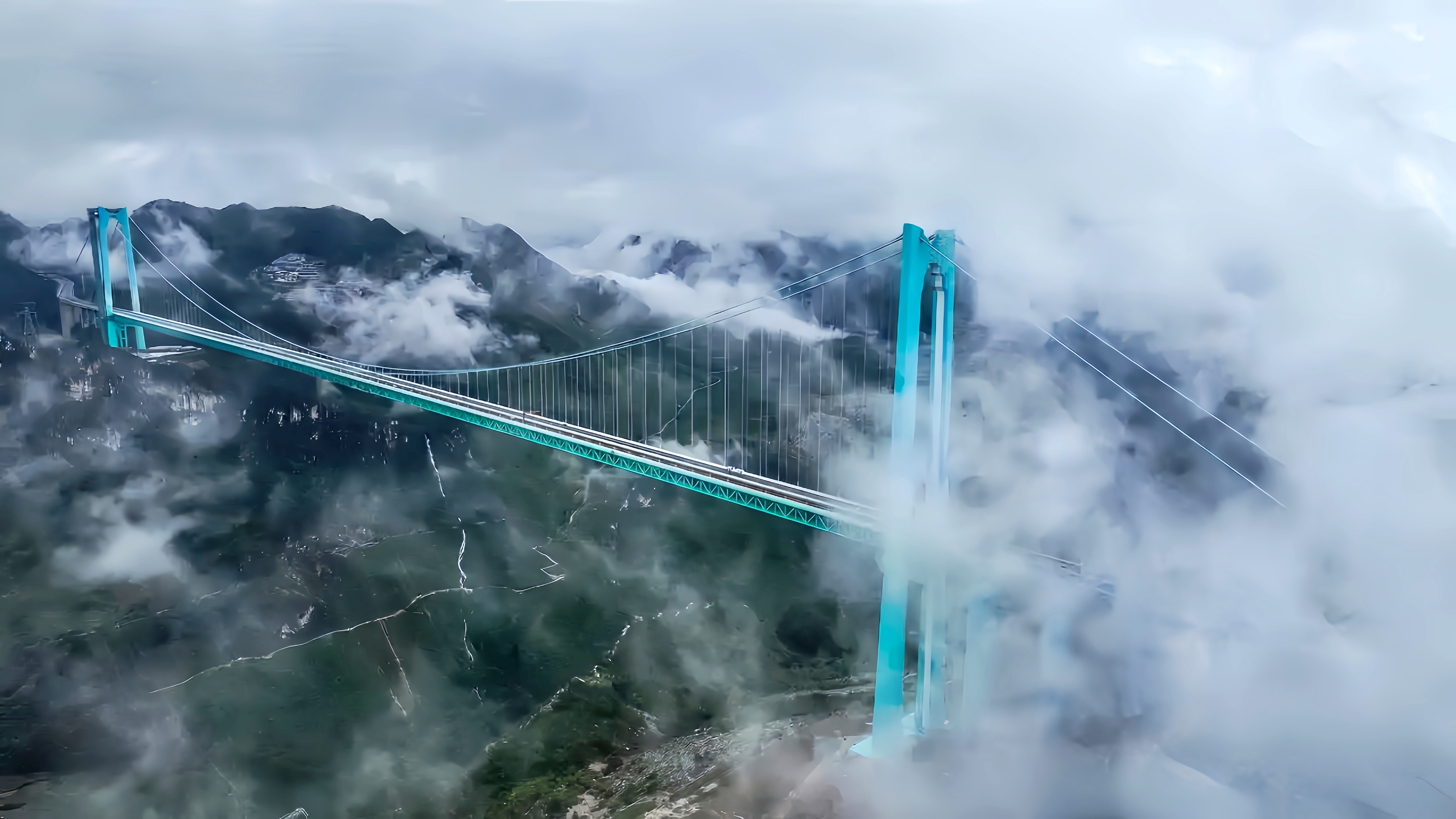 横跨贵州黔西南州与安顺市交界处的花江峡谷大桥全长2890米,桥面距水面垂直高度625米,主桥为跨径1420米的单跨钢桁梁悬索桥,主桥跨径居山区桥梁跨径世界第一、桥梁高度居世界第一。中国中铁旗下中铁大桥局桥科院承担施工监控,中铁工业中铁宝桥承担该桥主桁架等22000吨钢结构生产制造任务。
