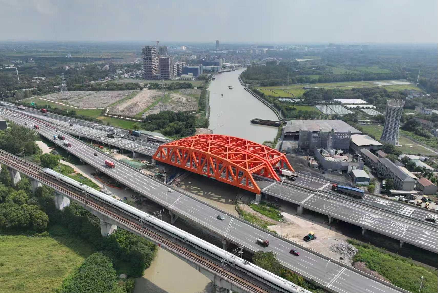 9月26日,中国中铁旗下中铁大桥局承建的沪(上海)杭(杭州)高速公路长山河大桥东半幅正式通车。沪杭高速长山河大桥是浙北高等级航道网集装箱运输通道项目关键节点之一,上跨杭平申线航道,线位为西南-东北走向,主桥长170米,设计时速120公里。新建大桥采用112米跨下承式简支钢桁梁,主孔通航净空增至7米,确保3层集装箱船顺畅通行。长山河大桥建成通车后将大幅提升浙北内河集装箱的通过能力,拓展嘉兴港、宁波舟山港等港口的经济腹地辐射范围,对浙北海河联运枢纽建设、大宗货物“散改集、陆转水”具有重大意义。(王晓艺 薛天文)