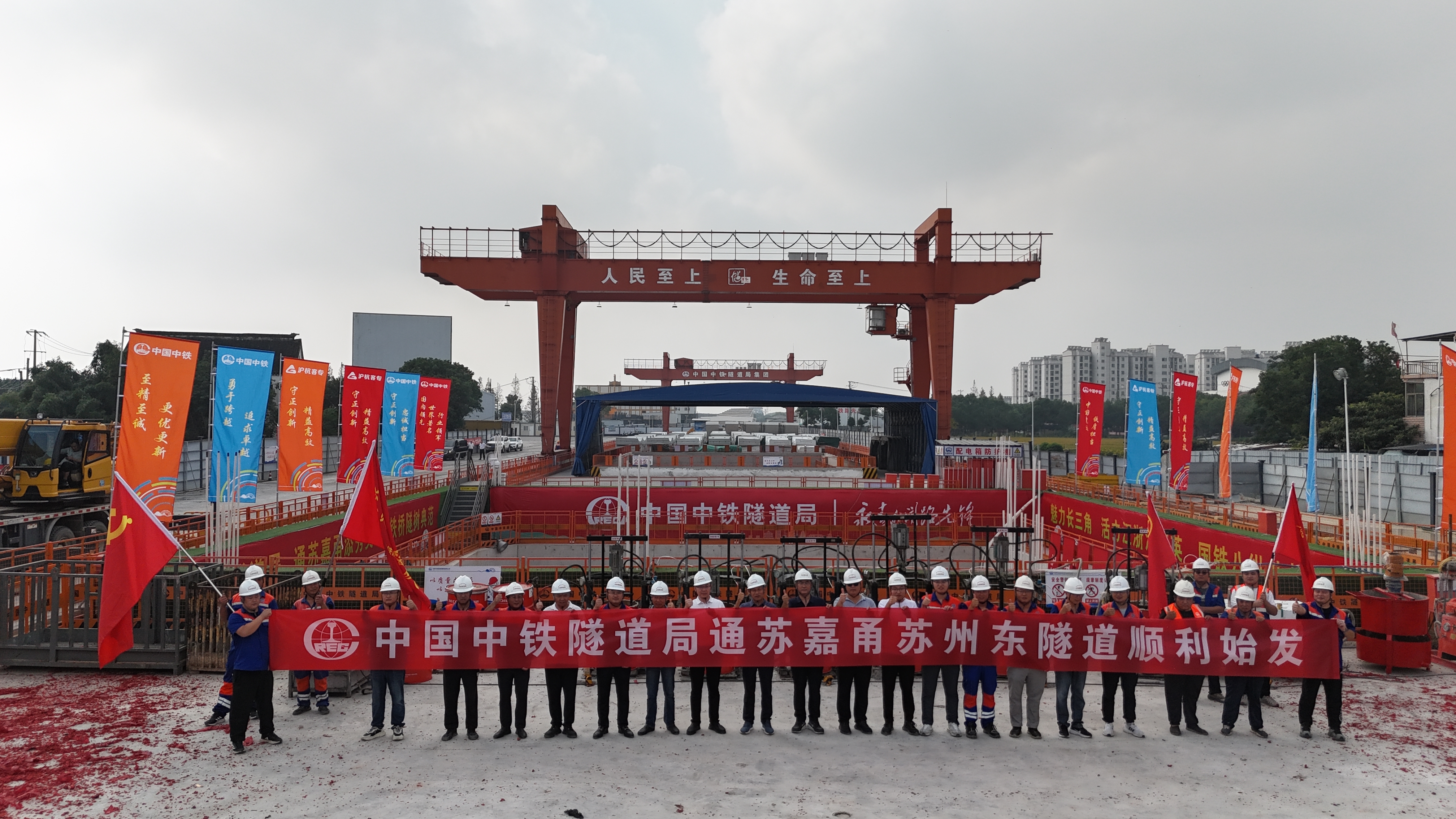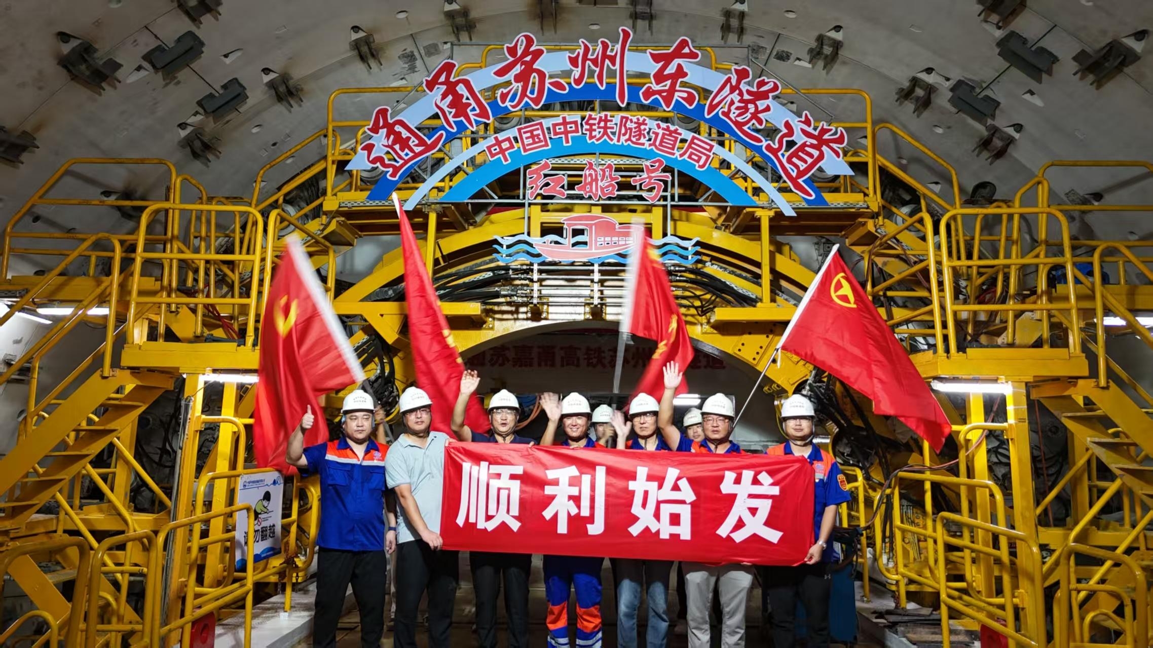 10月12日,国产超大直径泥水平衡盾构机“红船号”在新建南通至宁波高速铁路(简称通甬高铁)苏州东隧道顺利始发。