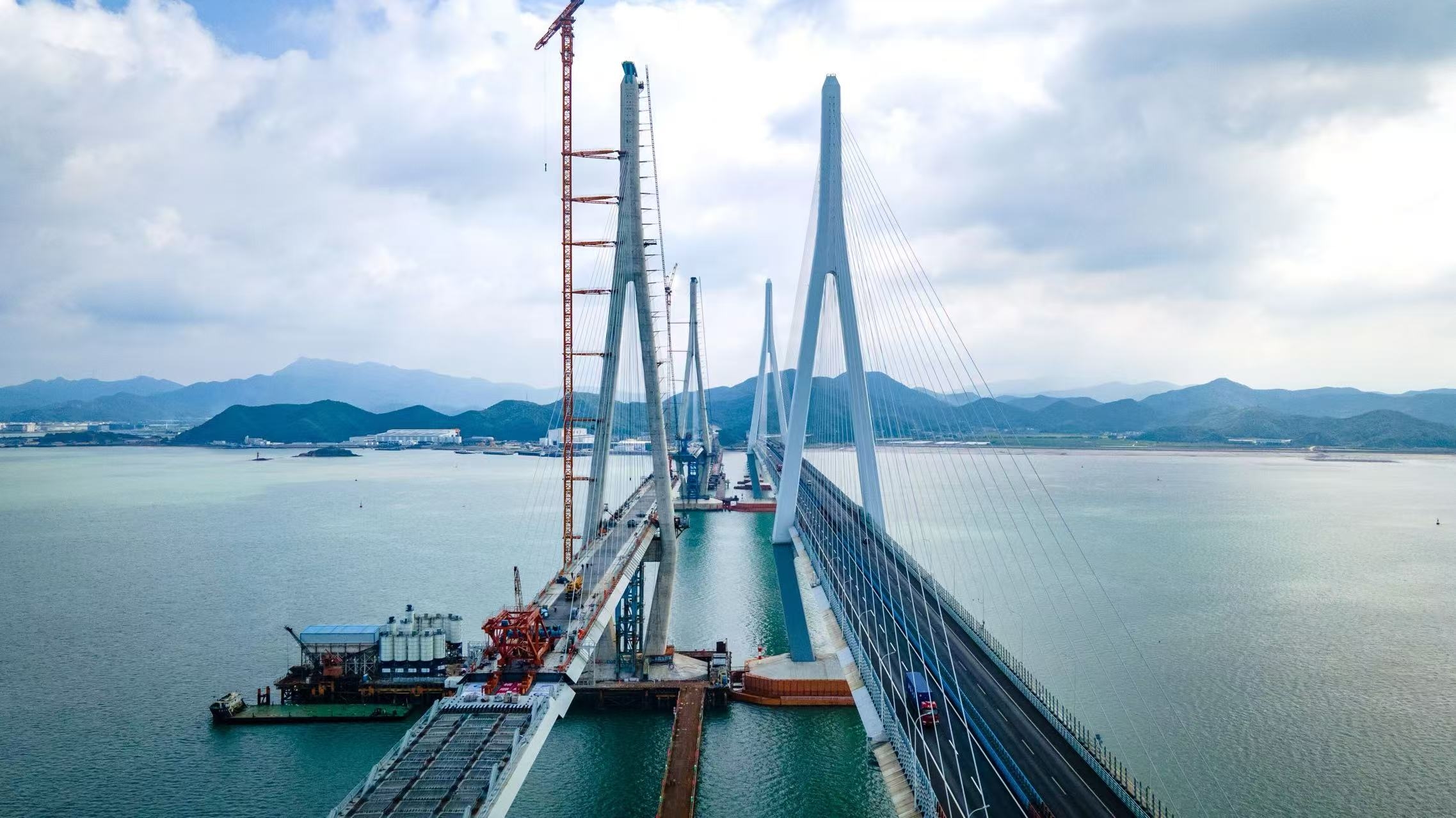 宁波市域铁路象山线连接宁波城区与象山县,全线长约61.45公里,共设10座车站。作为市域铁路象山线的控制性工程,象山跨海大桥全长8.276千米,为主跨688米的组合式钢箱梁斜拉桥。大桥建成后将创下“国内首座市域(郊)铁路跨海大桥”“国内并行既有线最大跨径桥梁”“国内最大跨度组合式钢箱梁铁路斜拉桥”等多项纪录。