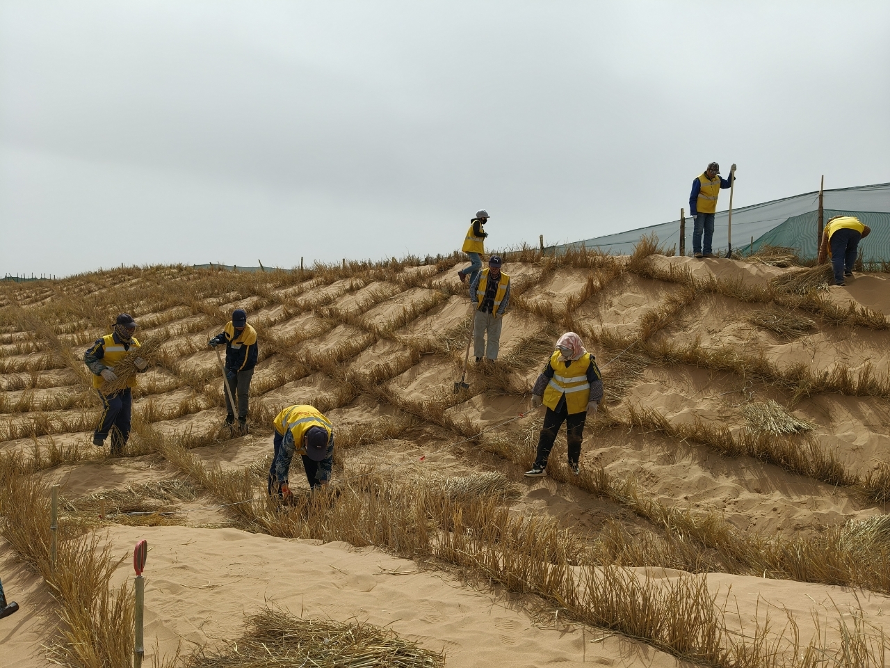 进入秋季以来,治沙团队共维修5.8公里高沙障、19050平方米防沙网格。新建沙障工程也在紧锣密鼓推进,团队引入生态治沙理念,利用当地丰富的芦苇资源,新建3600平方米芦苇网格与3100平方米芦苇高沙障,既降低工程成本,又实现“以沙固沙、生态循环”,在铁路外侧筑起了一道道蜿蜒的“绿色长城”。(郭志强 韩蒙)