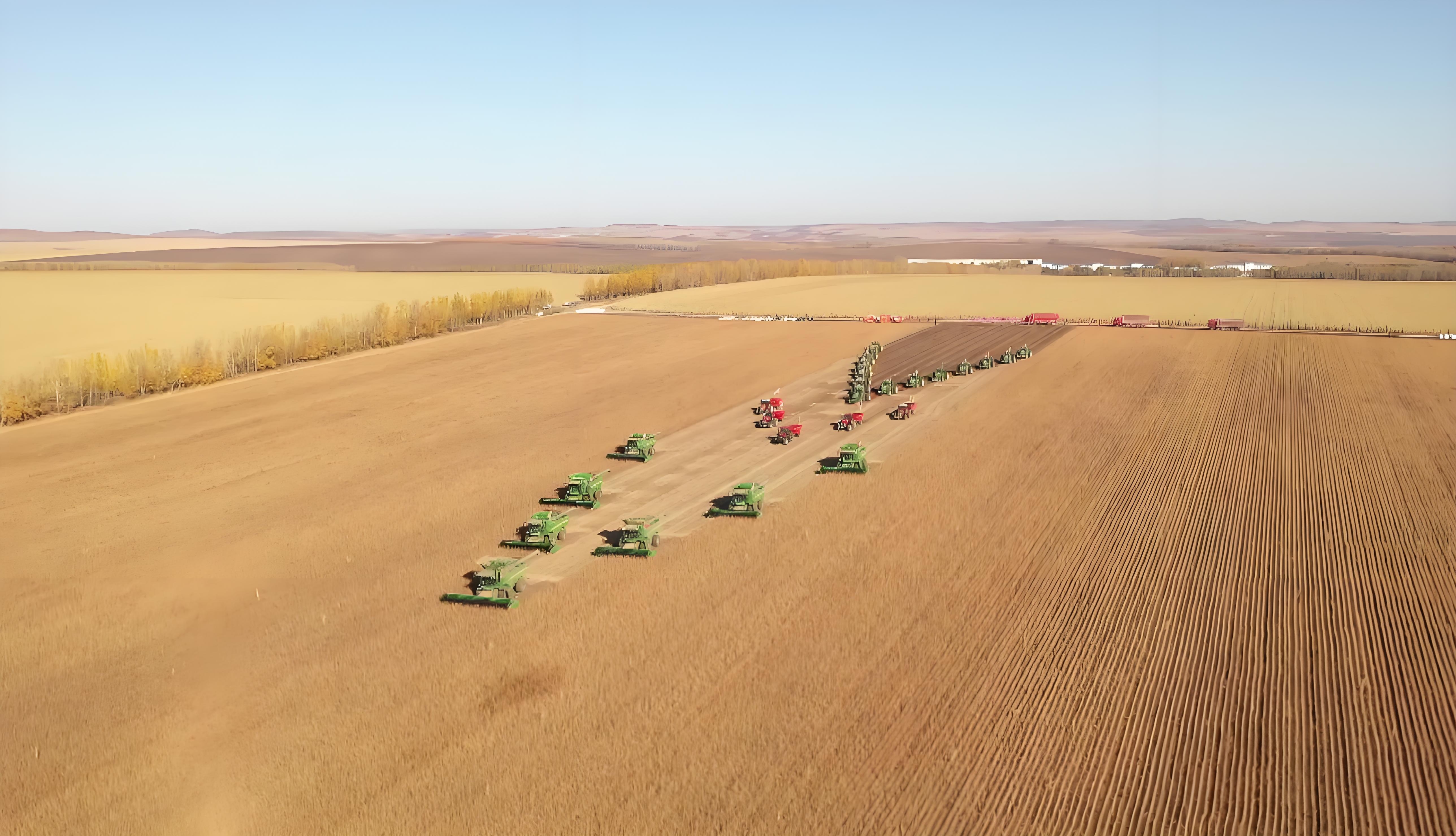 面对工期与农时协调的特殊挑战,8个月的建设周期恰好覆盖大豆和玉米的完整生长周期。项目部深入调研,精准掌握当地农业生产节奏,采用分阶段、差异化的施工策略:在播种前期和收获季后集中力量建设田间道路,打通施工运输通道;待气温回暖后,重点推进沟渠治理和构筑物建设。在“秋冬大会战”的关键期,项目部党支部联合当地村党支部开展“保耕助农”行动,协调收割机300台次抢收作物2.4万亩,推动工程建设与农业生产两不误、双促进。