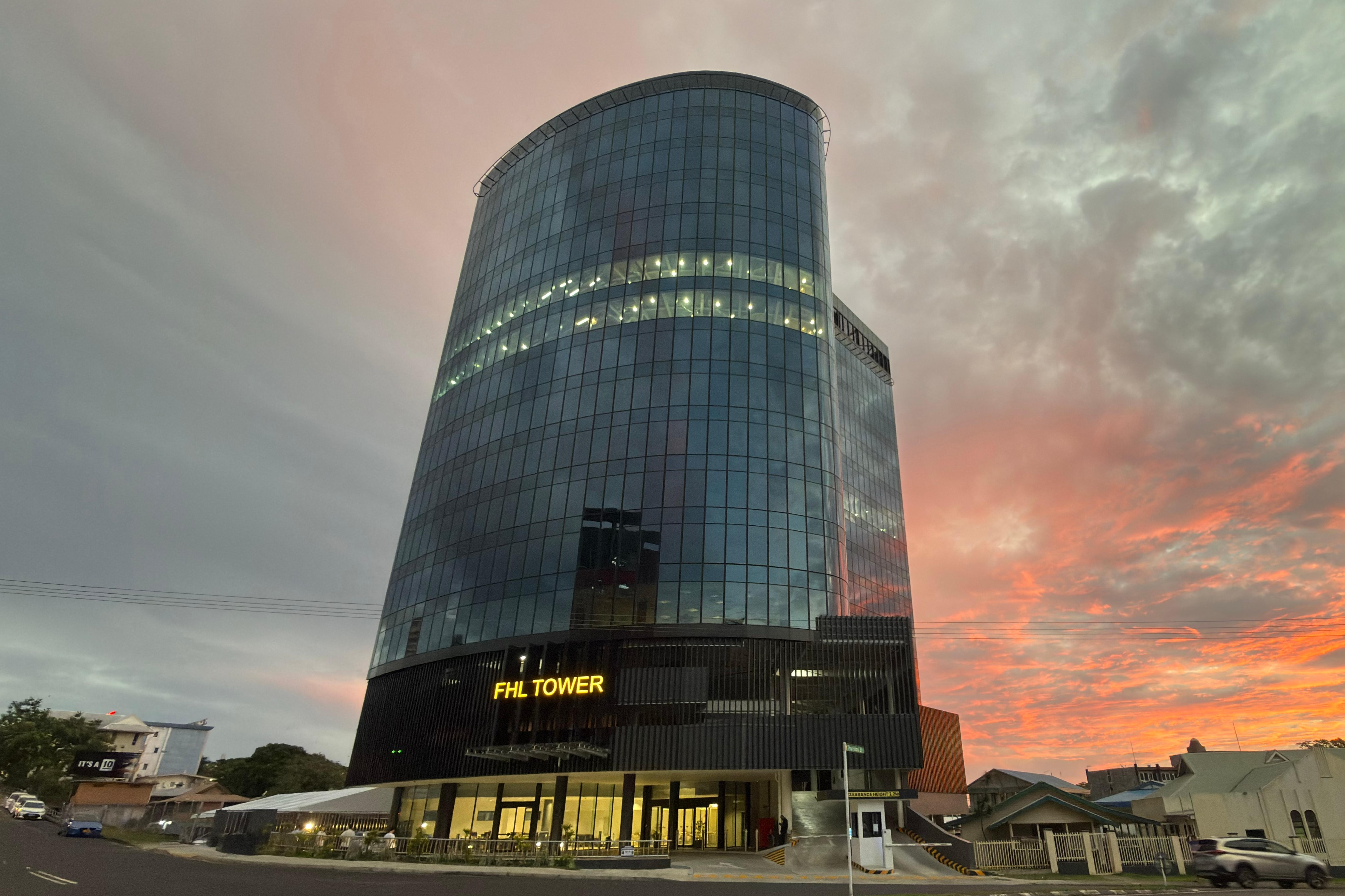 FHL大厦位于苏瓦核心区域,占地面积1727平方米,建筑面积达18100平方米,共18层,采用钢框架与钢筋混凝土核心筒组合结构,是中国中铁旗下中铁一局在南太平洋地区承建的重点工程之一。