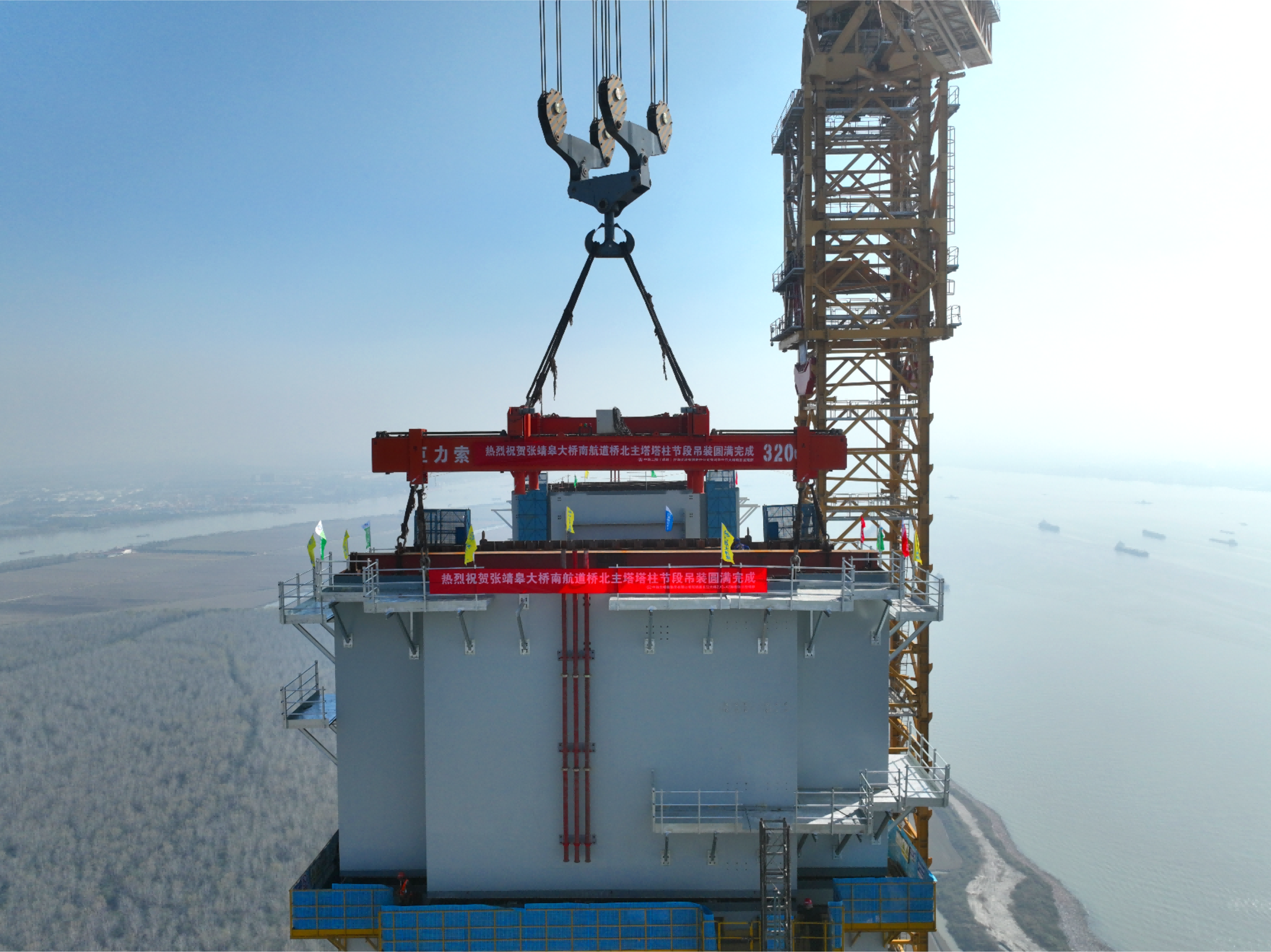 11月14日,中国中铁旗下中铁大桥局承建的张靖皋长江大桥南航道桥北主塔T29节段吊装完成,至此,大桥南航道桥北主塔柱主体部分施工完成。