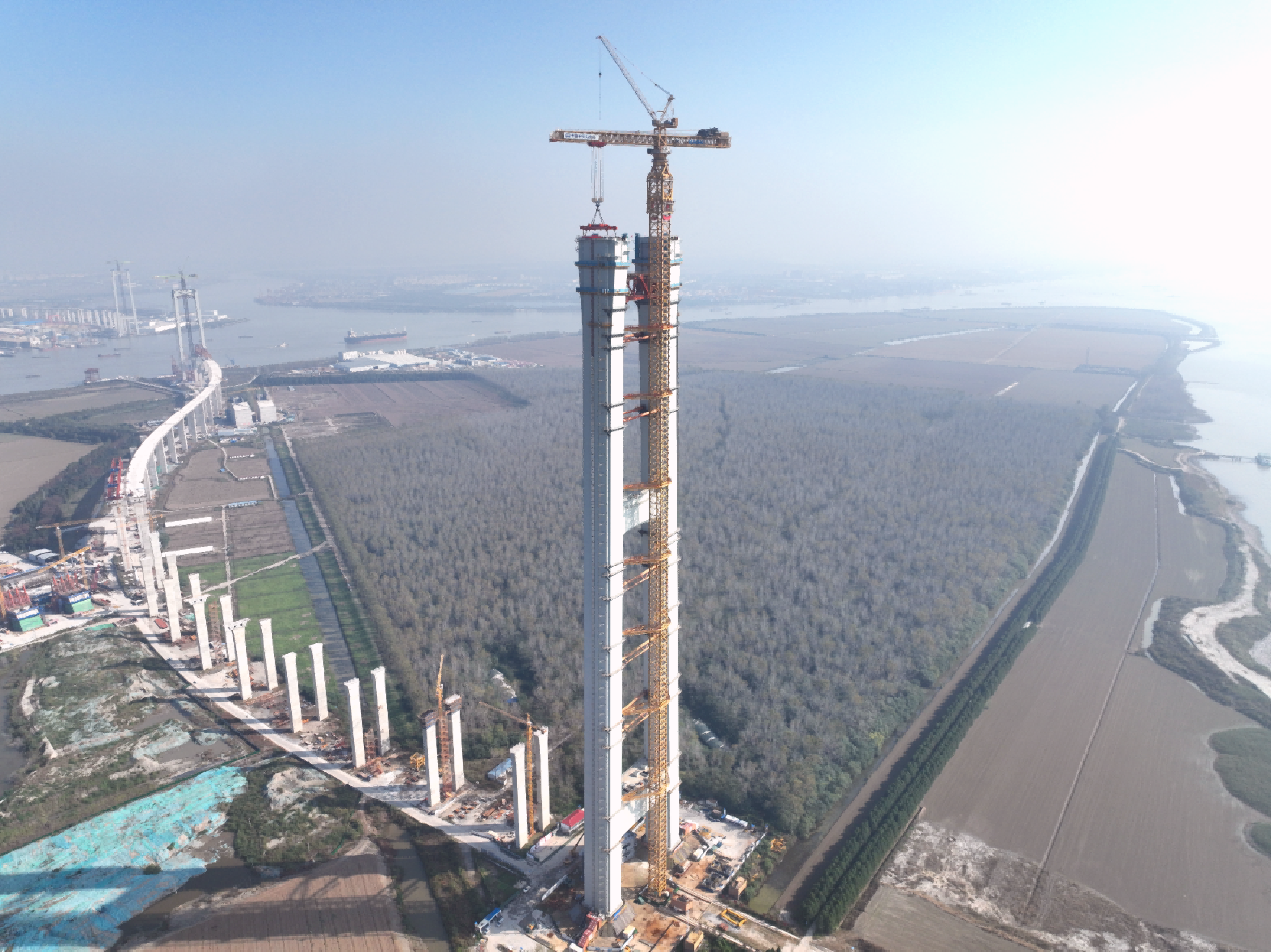 张靖皋长江大桥南航道桥北主塔柱施工完成