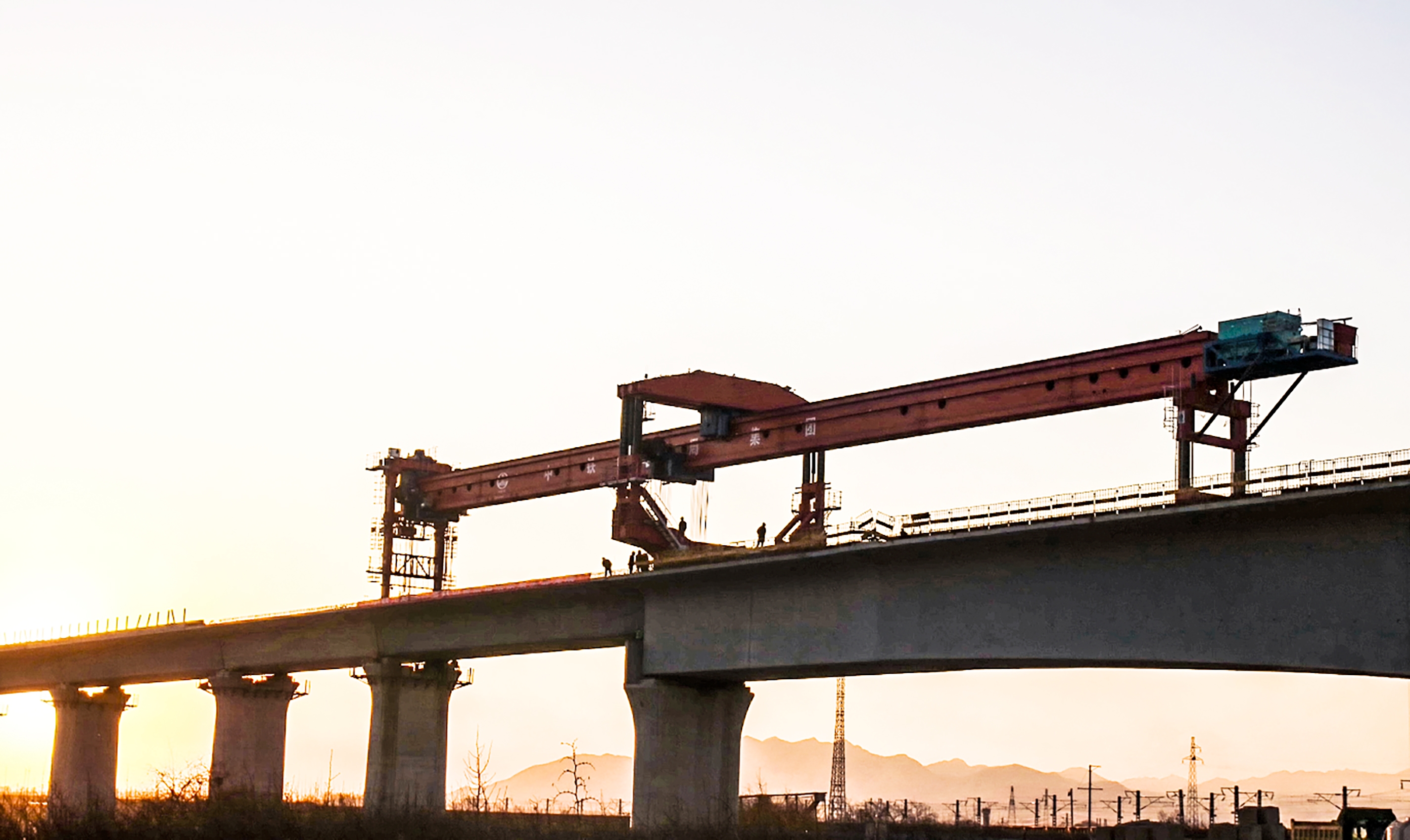 雄忻高铁正线全长约342公里,其中山西段工程约122公里,所需预制、架设箱梁共计1669孔。中国中铁旗下中铁三局承建雄忻高铁山西段4标正线全长31.15公里,共需架设箱梁651孔。该段自五台站特大桥34号墩至同河特大桥8号墩为连续下坡段落,最大坡度30‰,且架梁需要穿越5座隧道,桥隧、桥跨转换频繁,给架梁施工带来了极大挑战。
