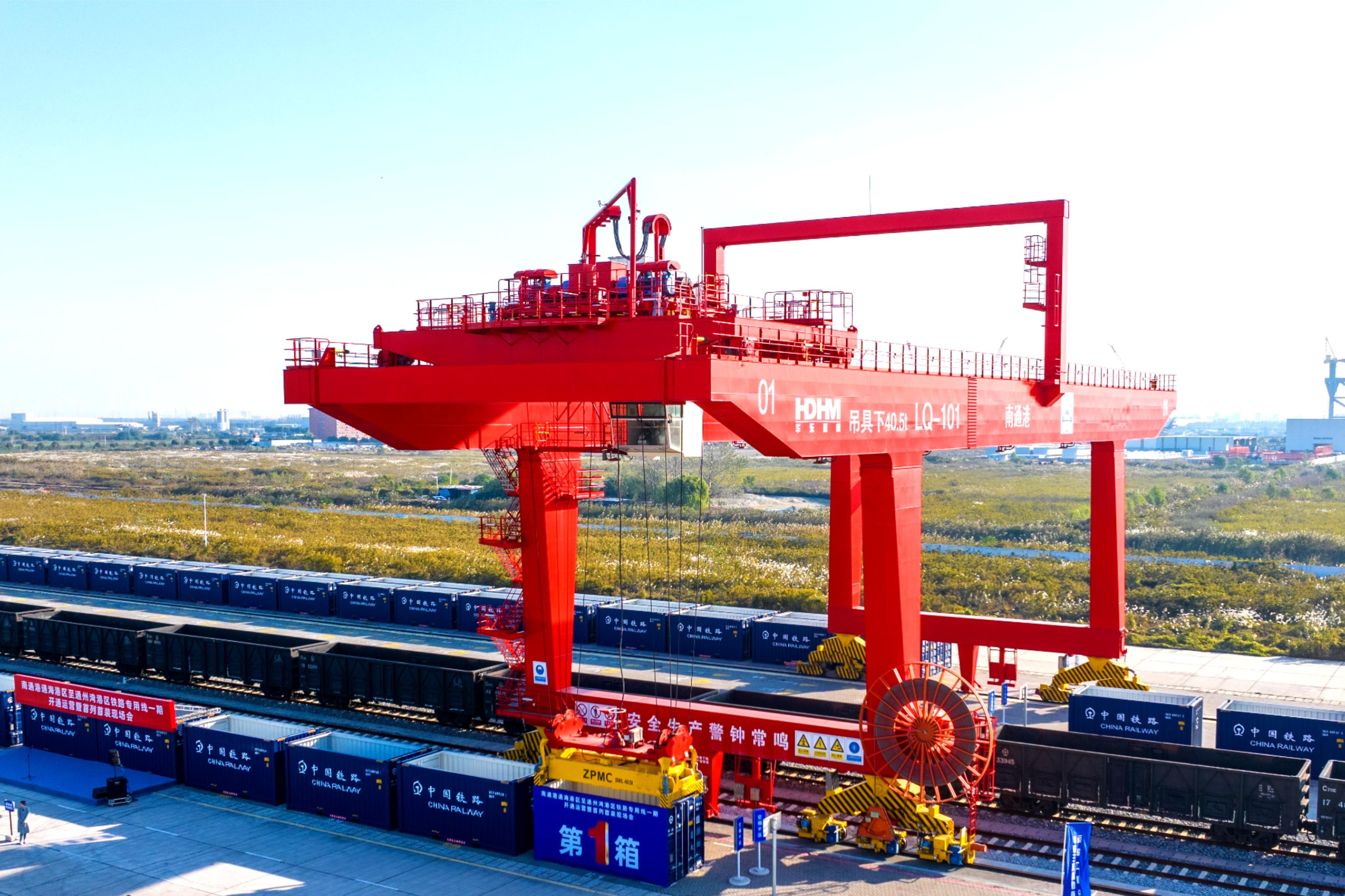 11月19日,中国中铁旗下中铁三局参建的南通港通海港区至通州湾港区铁路专用线一期(简称通海港区铁路专用线)正式开通运营。