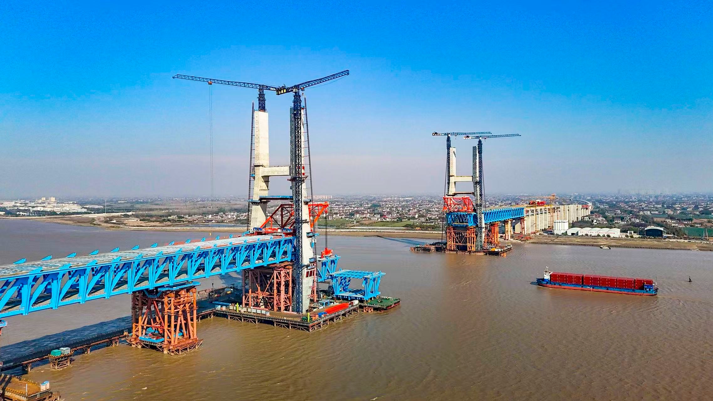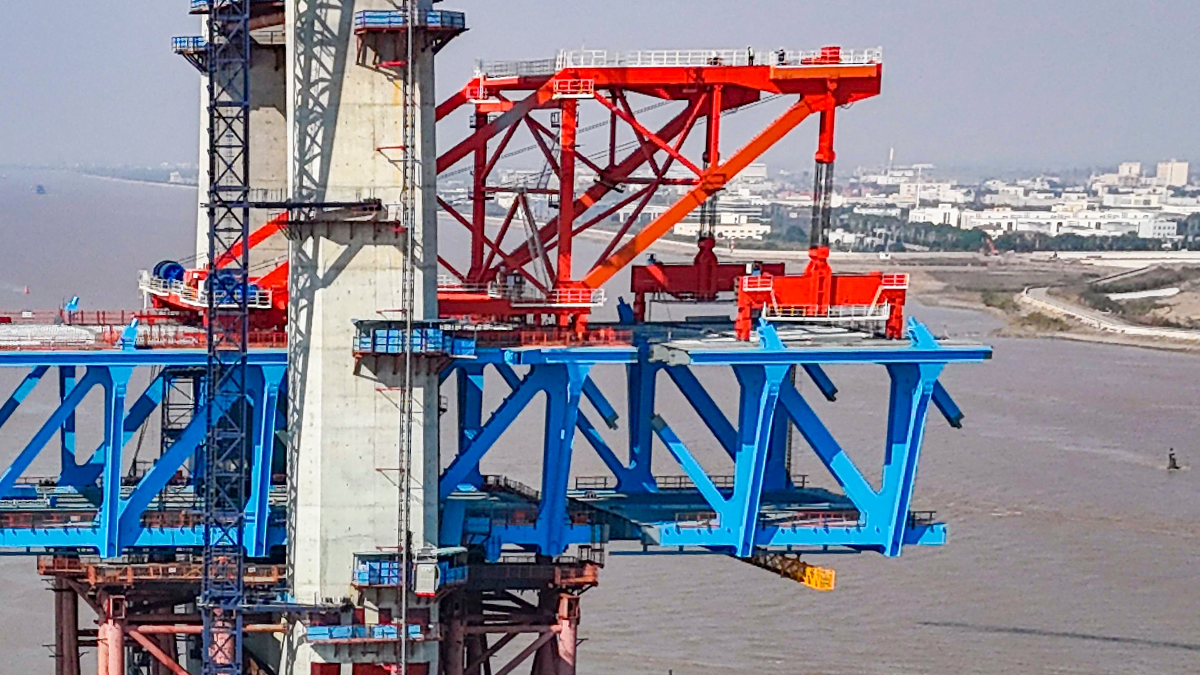 11月20日,中国中铁旗下中铁大桥局承建的新建上海至南京至合肥高速铁路(简称沪宁合高铁)崇启公铁长江大桥主通航孔桥南边跨钢梁吊装完成。