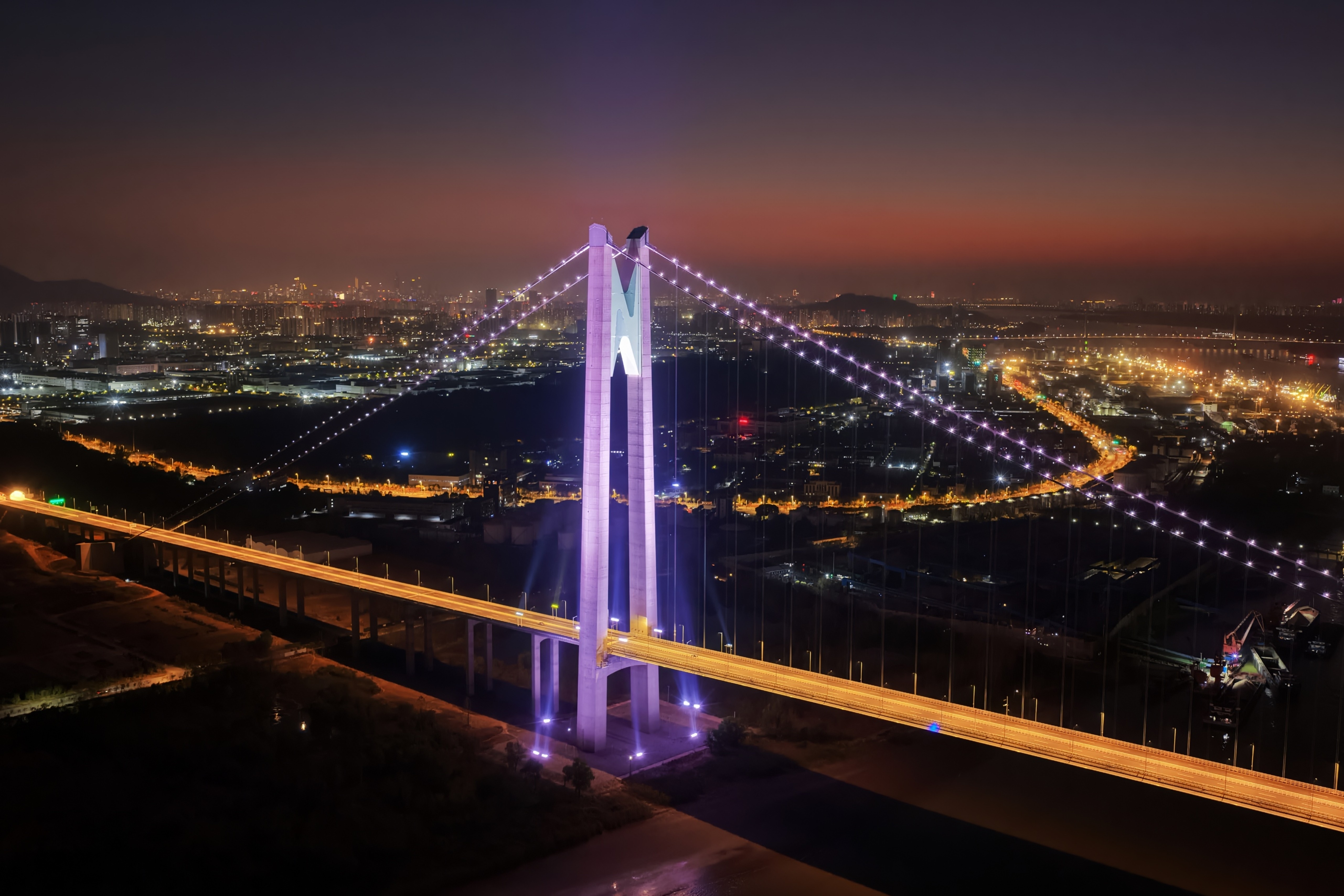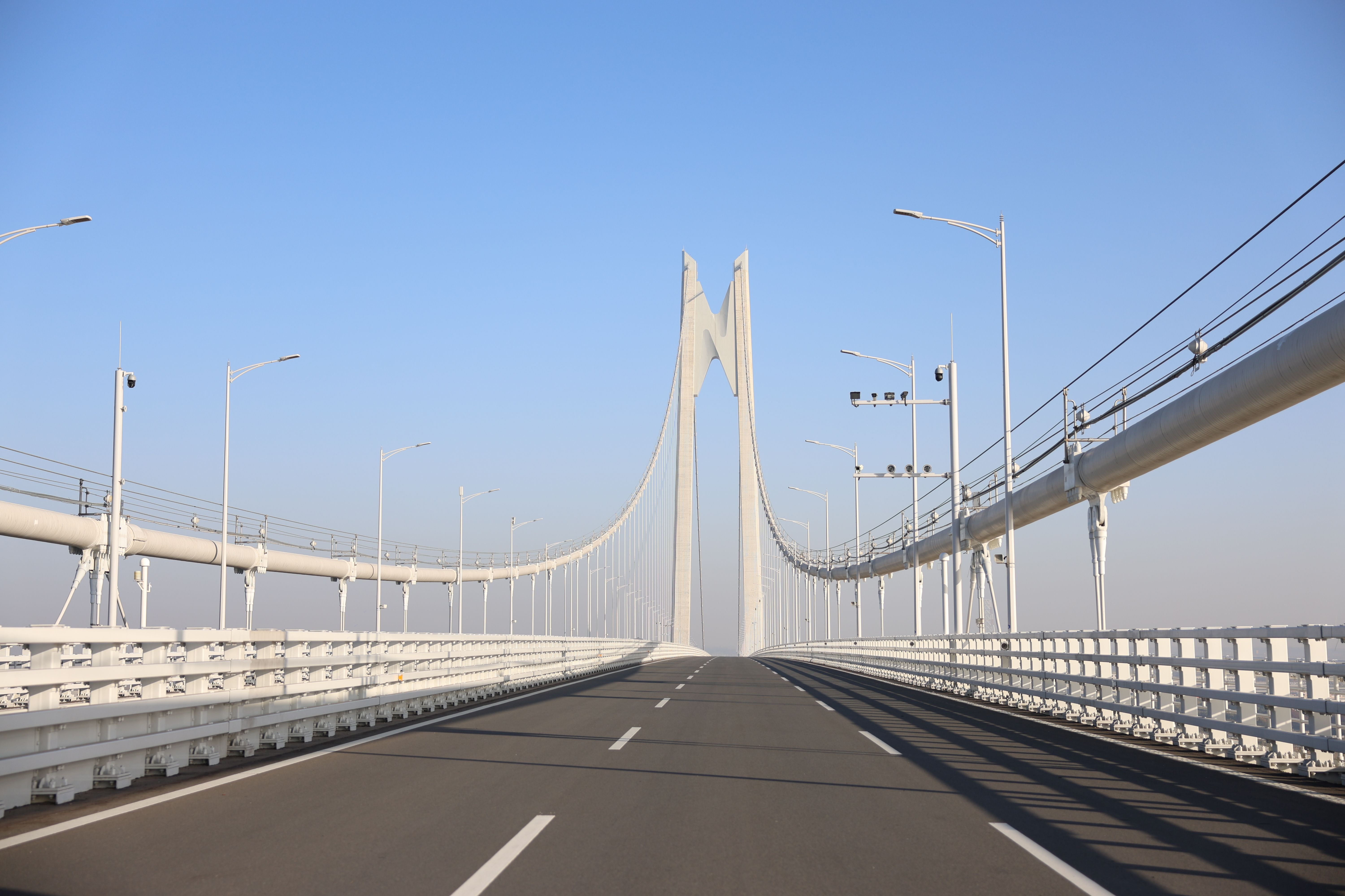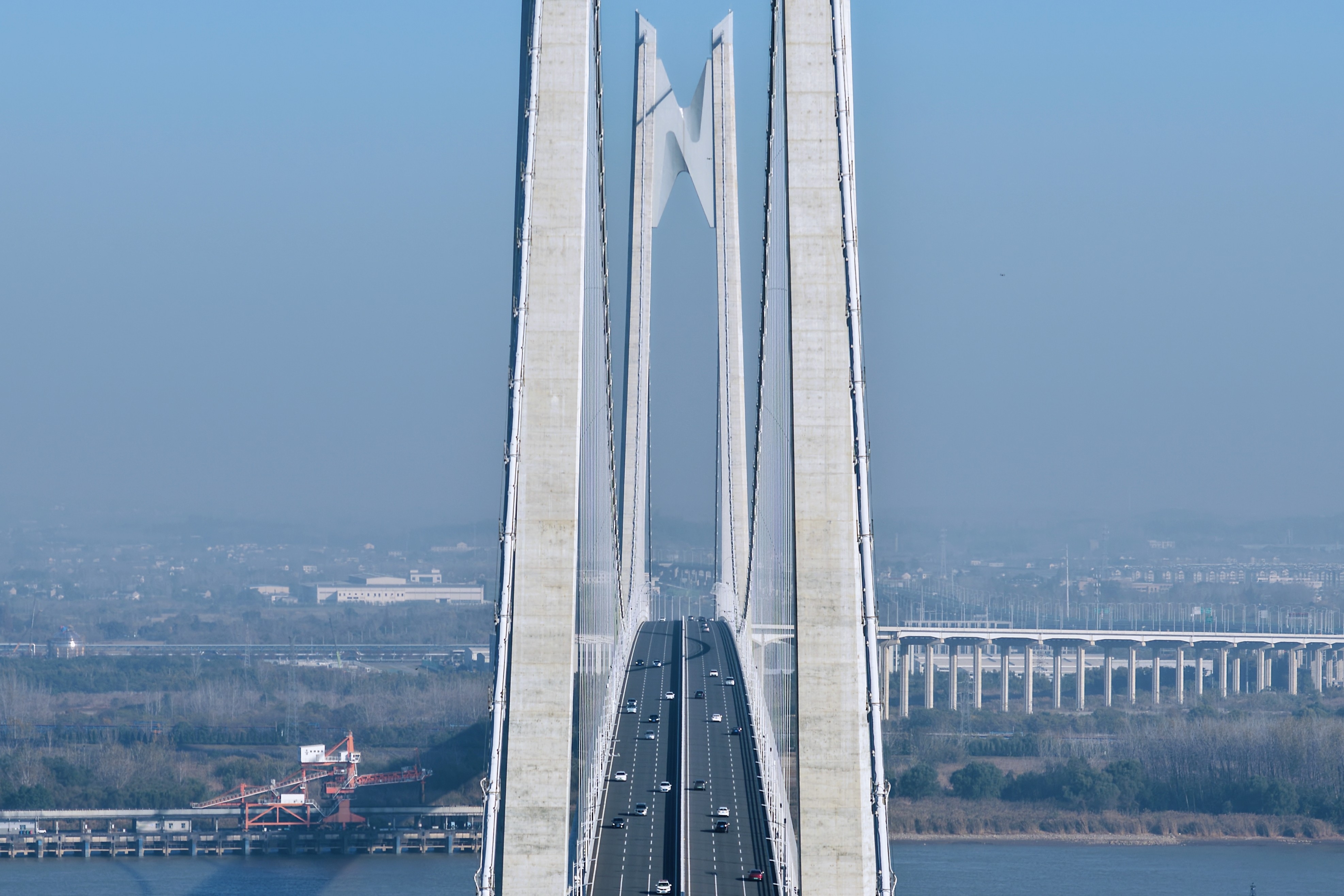 大桥全长13.17公里,主桥跨径1760米,采用“先塔后梁”工艺一跨过江,是连接栖霞区、江北新区与经开区的重要跨江通道。大桥主塔高263.8米,为南京地区桥梁最高塔;主缆钢丝采用抗拉强度为2100兆帕的国内强度最高等级的悬索桥钢丝,确保大桥在风荷载、地震等极端条件下的安全性;主跨桥面由钢箱梁组成,为97个节段,最大箱梁重量约333吨,相当于200多辆小轿车的重量。