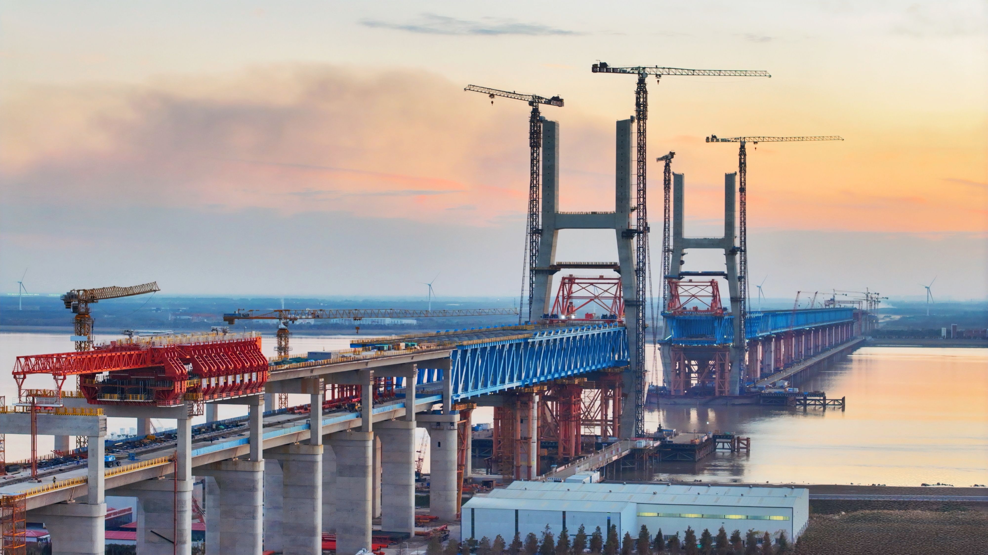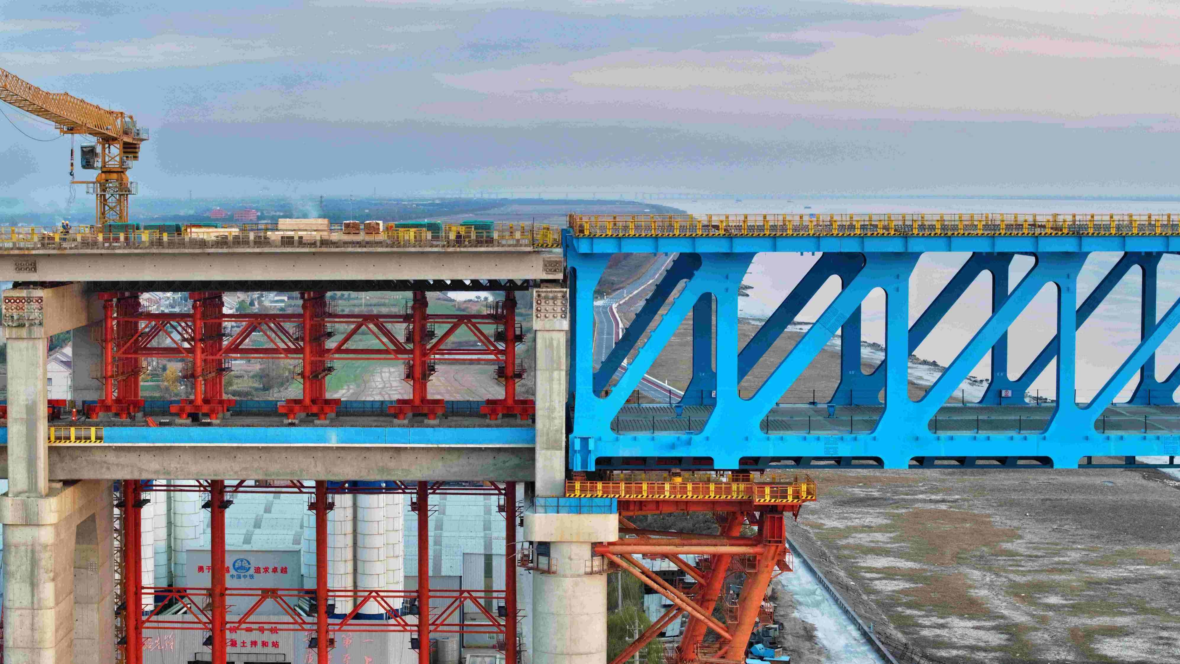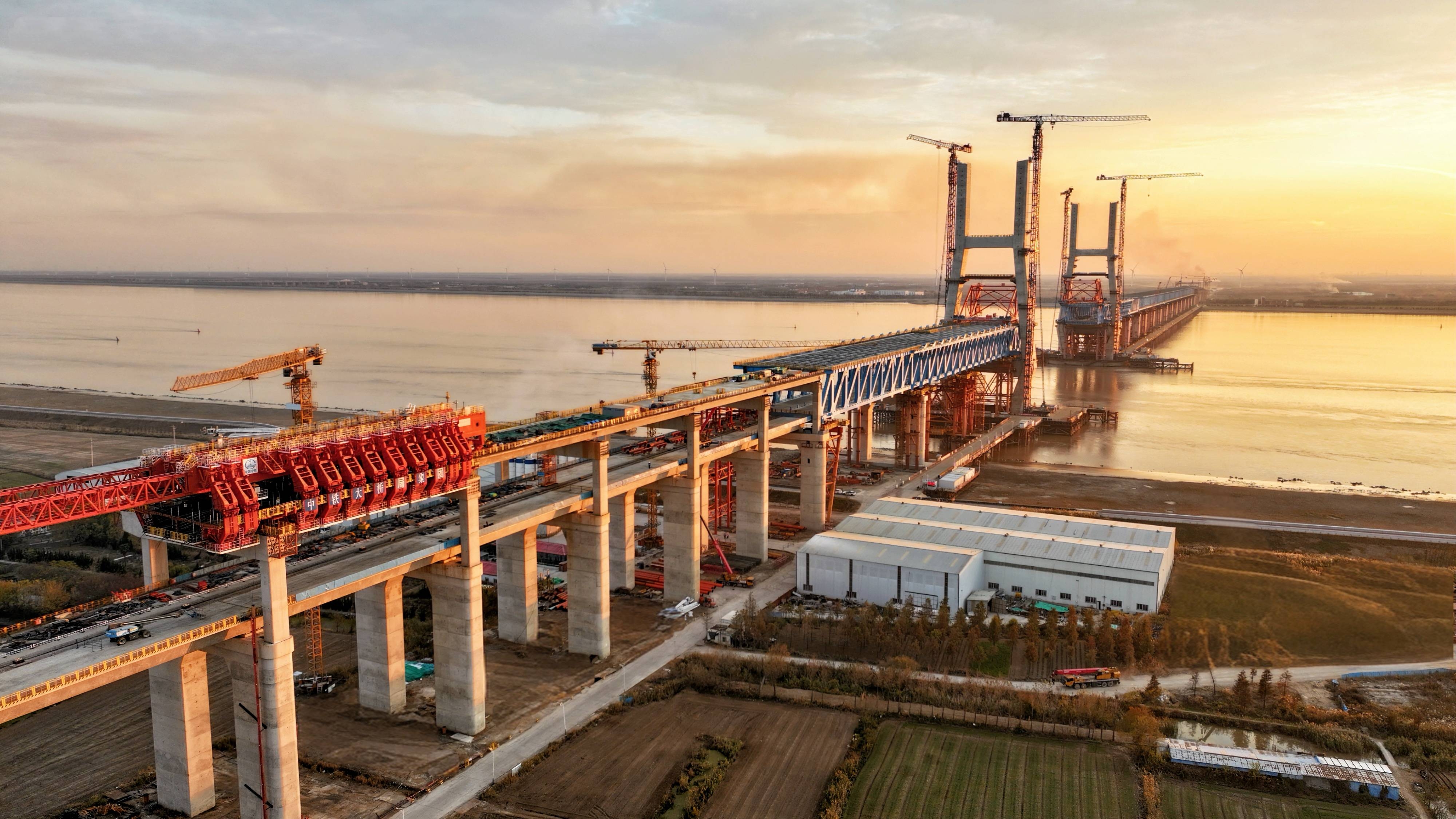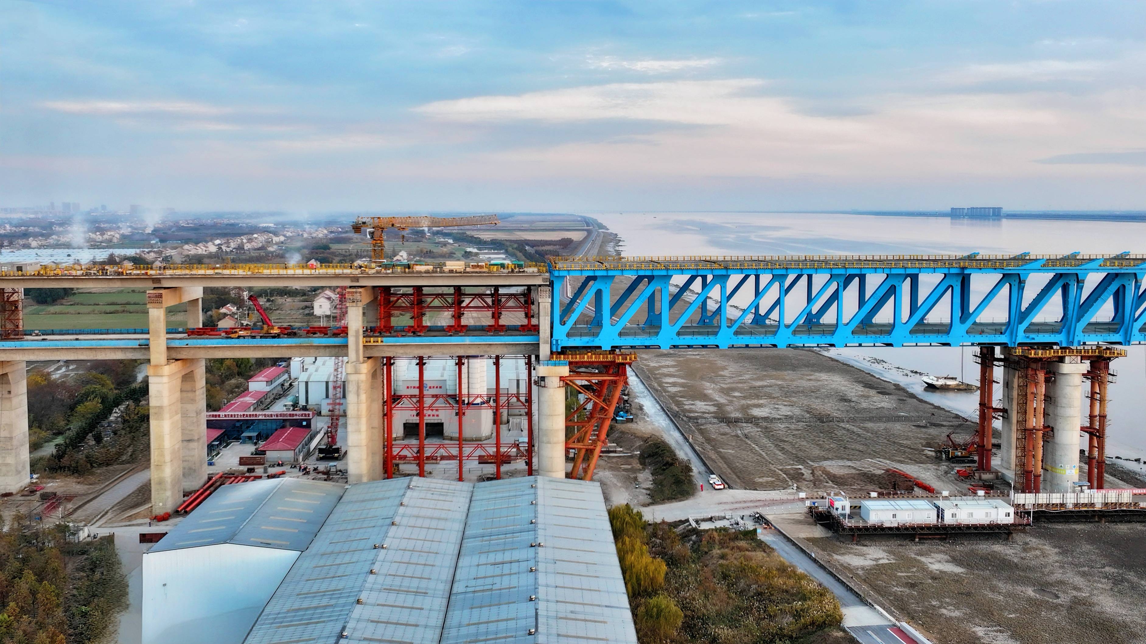 12月4日,中国中铁旗下中铁大桥局完成沪渝蓉高铁崇启公铁长江大桥边跨(合肥侧)钢桁梁全部拖拉作业,精准就位。