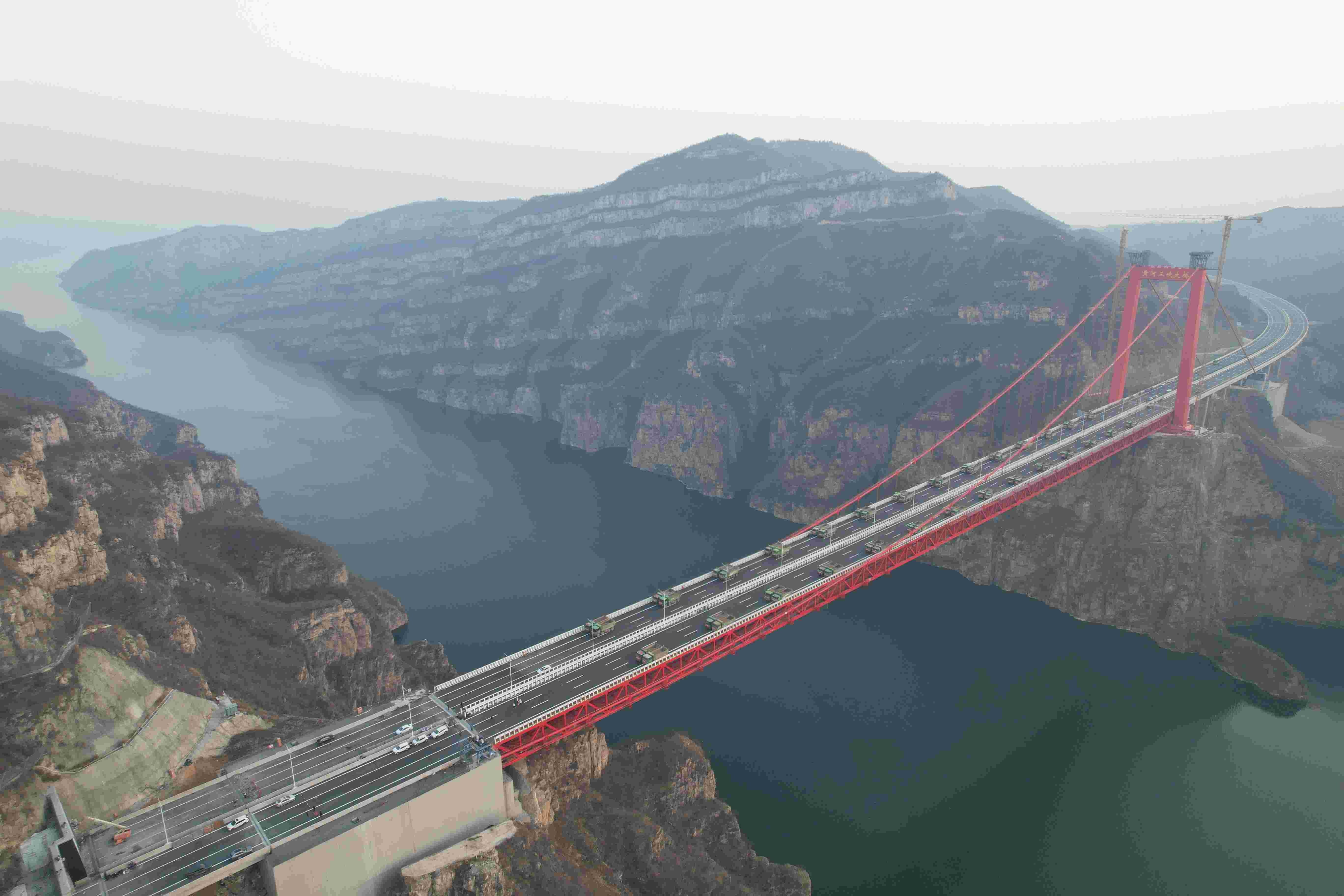 黄河三峡大桥建成通车后,两岸车辆通行时长将由目前两小时缩短至二十分钟左右。(王晓一)
