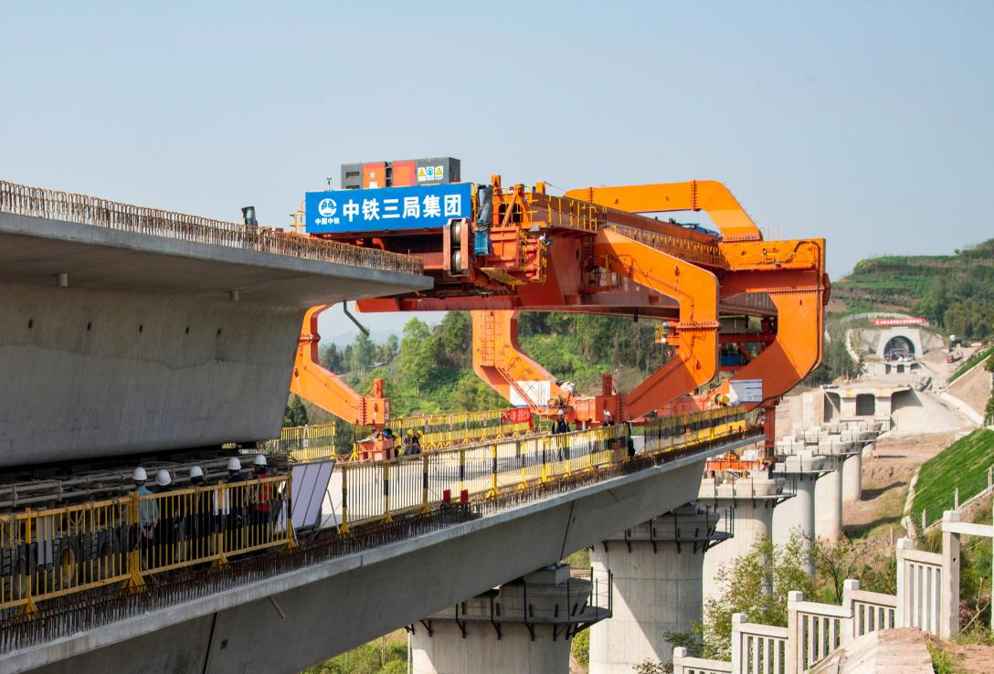 12月17日,中国中铁旗下中铁三局西渝高铁安康至重庆段(简称康渝段)大竹站制梁场生产的767榀箱梁全部架设完成,在全线率先完成箱梁架设任务。
