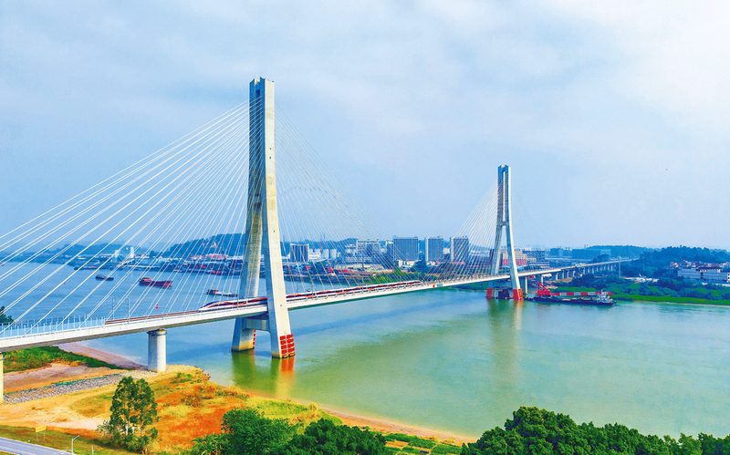 图为动车组通过中铁广州局承建的广湛高铁佛山特大桥跨东平水道斜拉桥。 徐小勇 卢业旺 钟喆 摄影报道