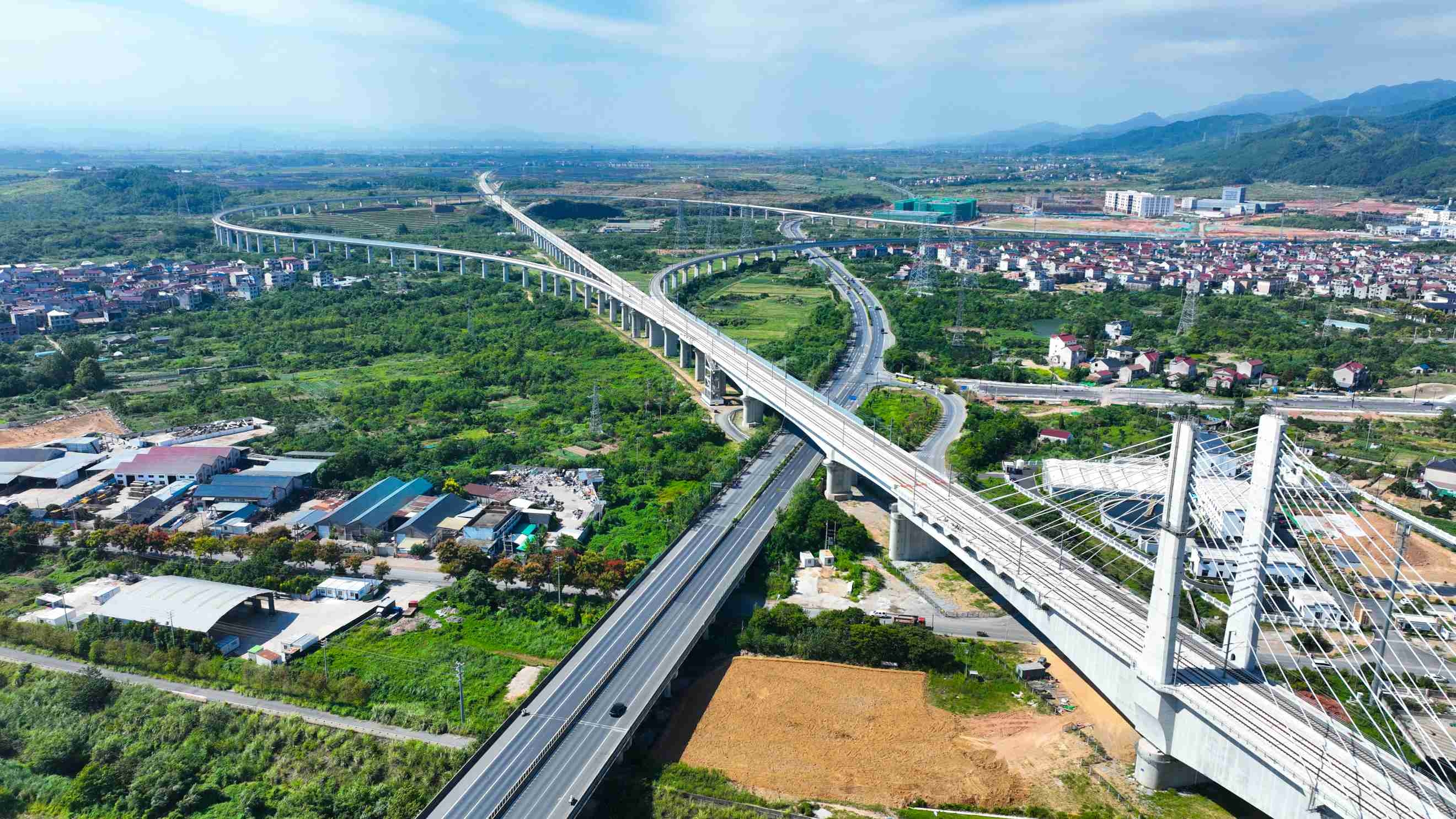 杭衢高铁通过杭昌高铁杭黄段、合杭高铁湖杭段延伸至杭州西站,形成沪昆通道杭衢段重要辅助通道,是长三角城际快速交通网的重要组成部分,正线全长约131公里,设计时速350公里,全线贯穿浙西山地,有隧道38座、桥梁119座。中铁三局、五局、电气化局参建杭衢高铁土建、四电工程及负责全线铺轨施工,中铁华铁参与施工监理,中铁工业中铁宝桥提供道岔产品。
