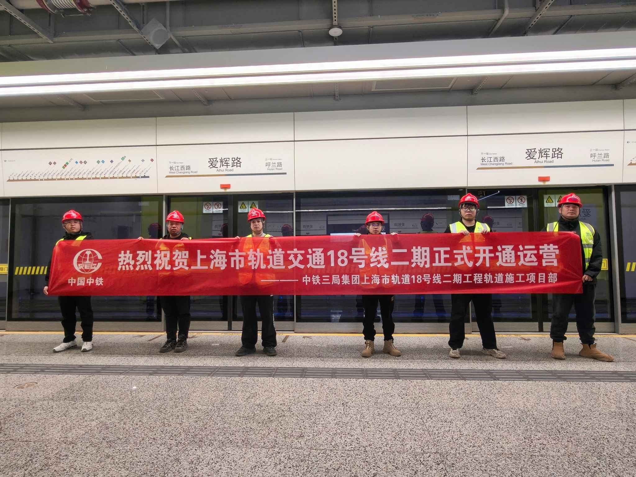 上海地铁18号线是城市北部区域轨道交通网络的重要延伸,线路北起宝山区康文路站,南至浦东新区航头站,全长44.9公里,共设32座车站。本次开通的二期工程全长8.135公里,共设6座车站,全部为地下线。线路通车运营后,有效缓解宝山区南部地区东西向交通压力,极大地改善了沿线居民公共交通出行条件。中铁三局、四局参与建设。