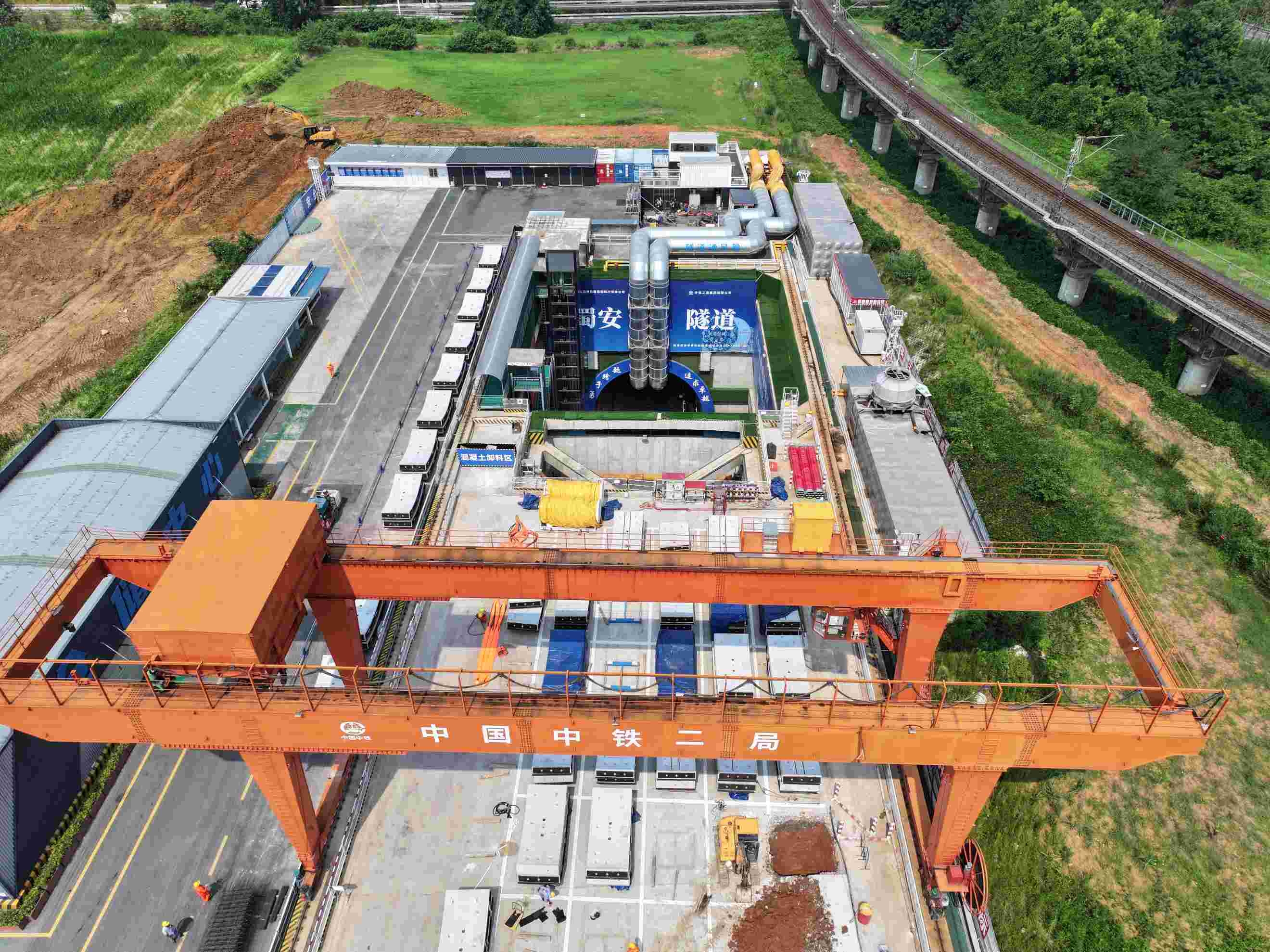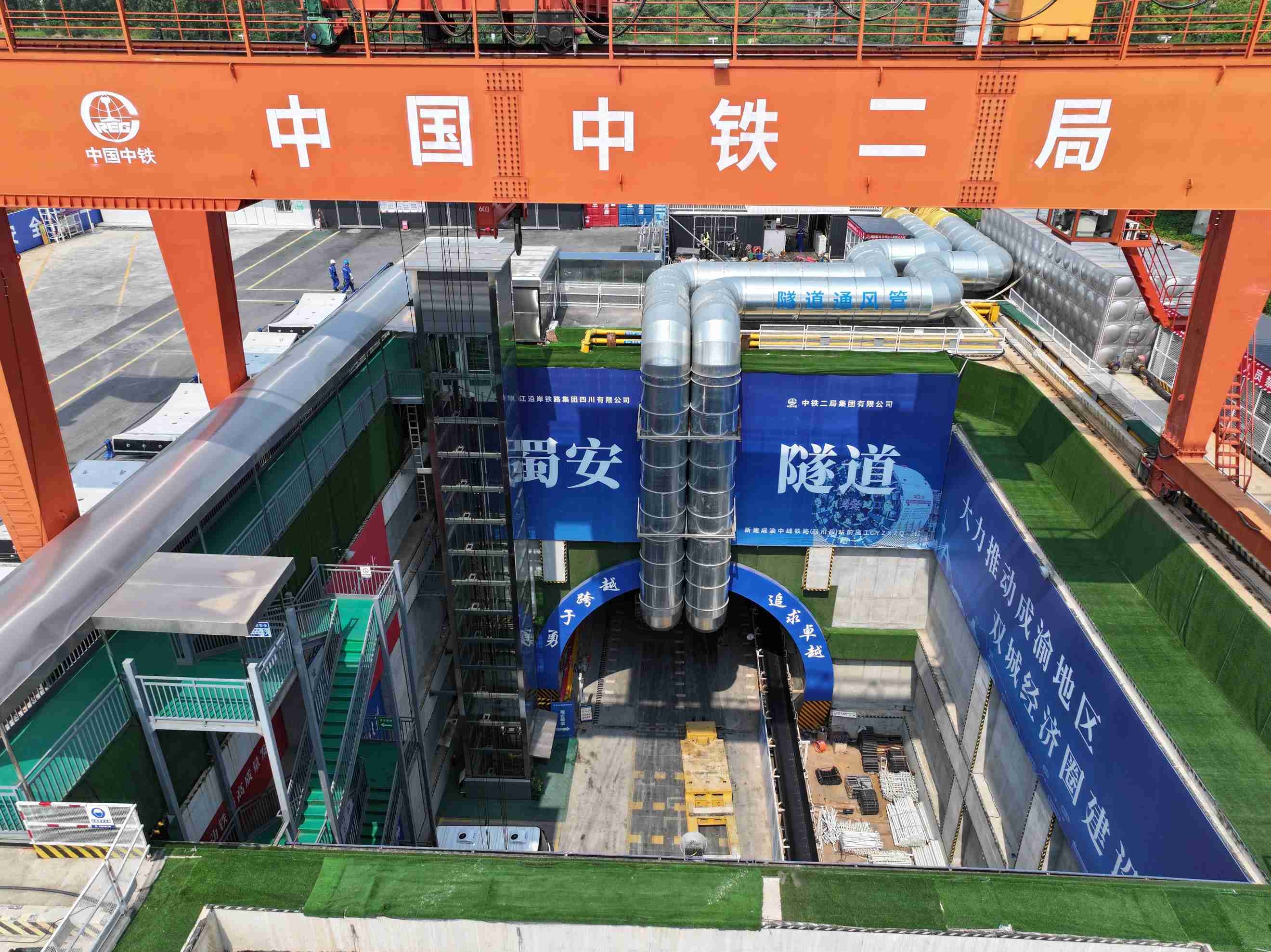 成渝中线高铁是国家“八纵八横”高铁网沿江通道的关键组成部分。蜀安隧道位于成都市成华区,是成渝中线高铁核心控制性工程,全长10380米,采用“盾构法+明挖法”组合施工,其中盾构段长9824米,由“蜀安号”和“成渝号”两台盾构机共同掘进,各掘进约5.3公里和约4.5公里。