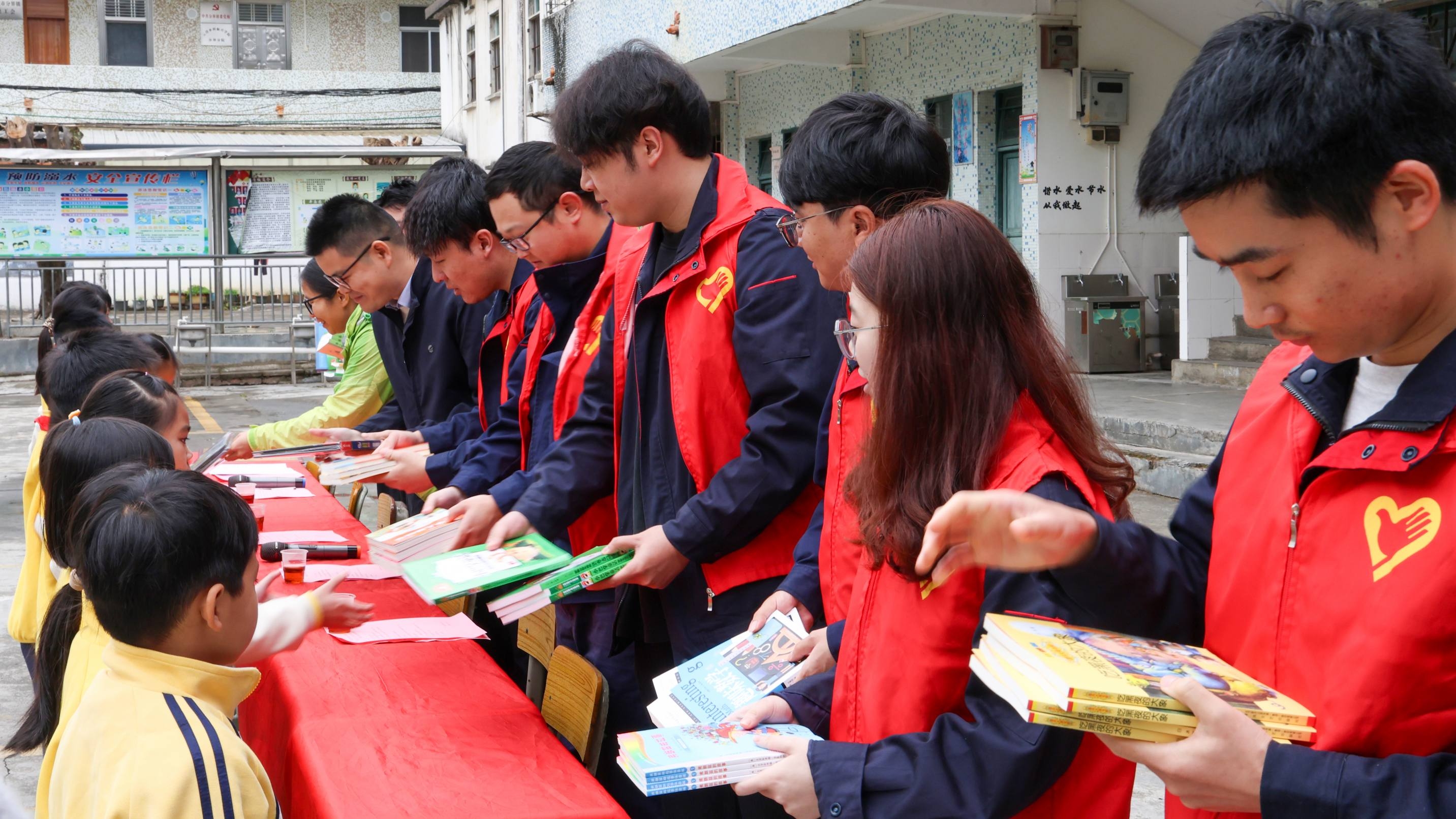 3月4日,中铁五局环北部湾广东水资源配置工程施工A5标项目志愿者走进罗定市分界镇分界中心小学,开展“学雷锋 传清风 书香伴春行”学雷锋志愿服务暨廉洁教育进校园活动,通过爱心助学图书捐赠与廉洁教育宣讲,关爱少年儿童成长。图为志愿者捐赠图书。(王中天、胡欣愉)