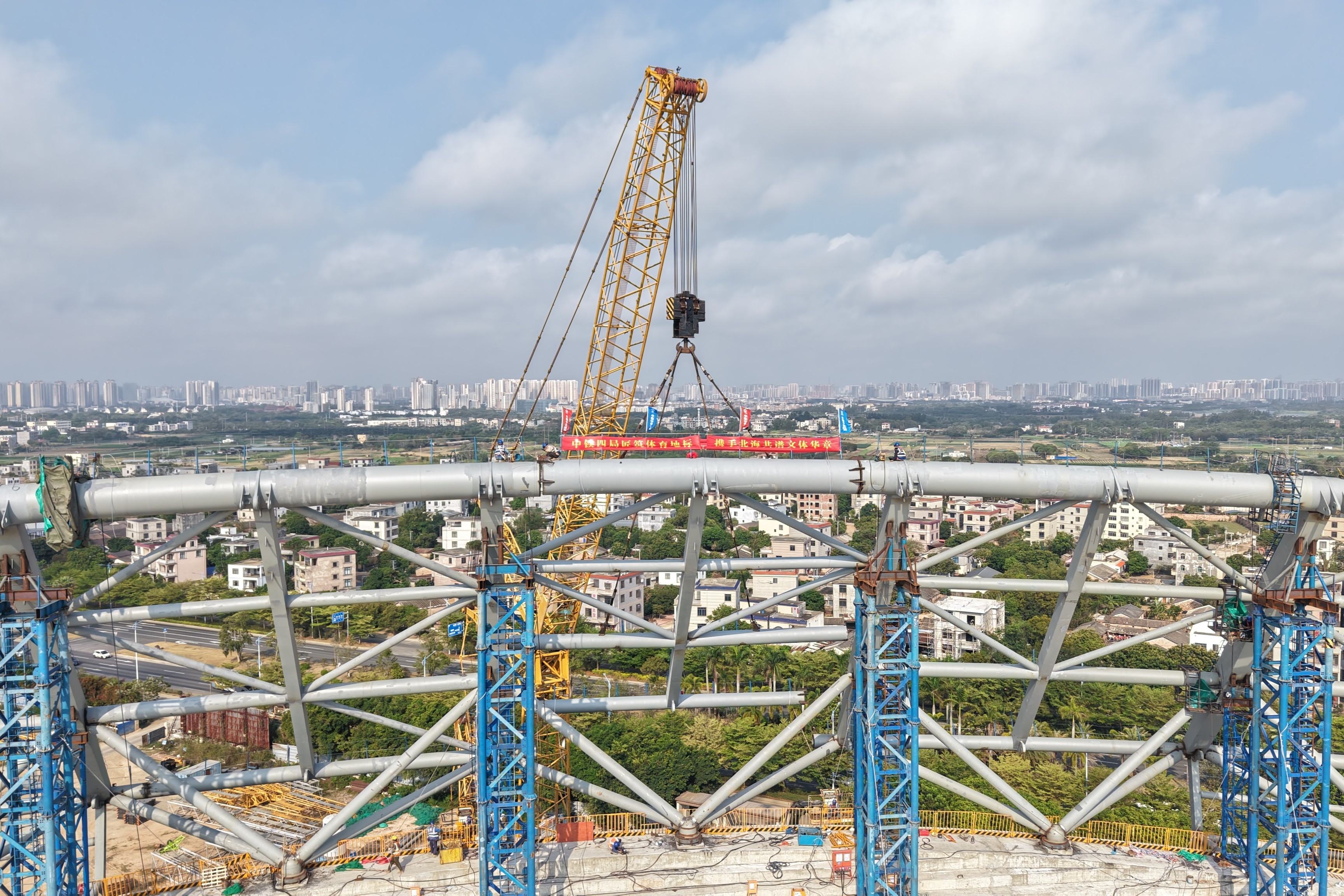 3月23日,由中铁四局承建的中国东盟(北海)体育实训基地体育场钢屋盖结构合龙。