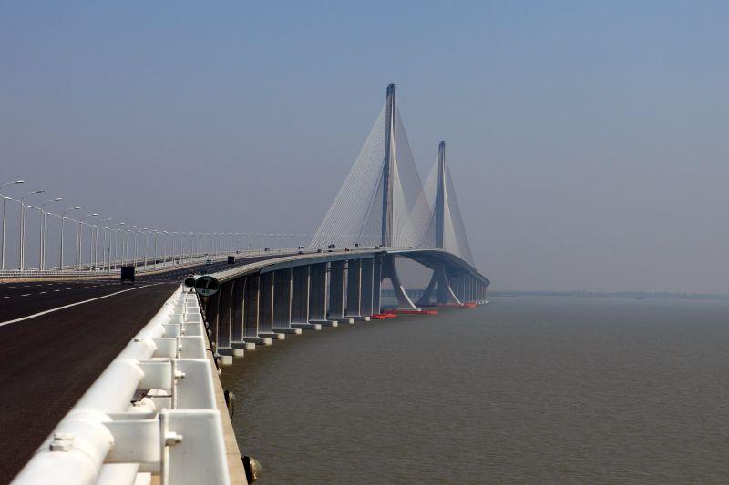 上海长江大桥是上海市崇明区境内的跨海大桥,位于长江入海口之上,是上海崇明越江通道重要组成部分之一,2004年底动工,2009年10月通车运营。大桥为主跨730米的双塔双索面斜拉桥,桥面为双向六车道,梁体采用分离式双主梁形式,钢箱梁、钢索塔采用Q345qD+Q345qC材质钢材,中铁山桥承担了3.6万吨钢梁制造任务。