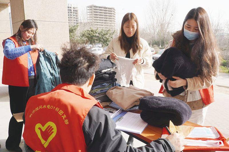 ②3月5日,中铁二局郑许项目部组织开展“物尽其用、分享爱心”义务捐衣活动,募集的衣物将人送往青海玉树藏族自治州新寨村。 姜玉友摄