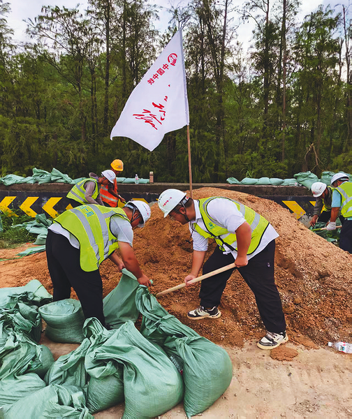 中铁一局中山集群项目在防御台风“桦加沙”中,主动对接广东省中山市坦洲镇、三乡镇人民政府,并与当地水务事务中心建立联动机制,共享御风防汛物资储备信息,承担部分地段防洪堤、低洼地带等重点区域防御工作。在西江防洪堤坝所负责的800米范围内,紧急堆码约8000个沙袋,将堤坝整体加高了15厘米。同时,抢装沙袋近1万个,用于城区内部防涝。 王金荣 郭晟源 石双梅 摄影报道