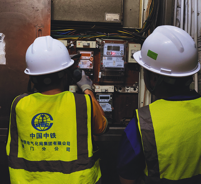 台风减弱后,应澳门电力有限公司要求,中铁电气化局澳门分公司迅速响应,向澳门低洼浸水地区派出专业电力维护人员,更换居民区域浸水电表,快速恢复相关区域供电。 马乙峰 摄