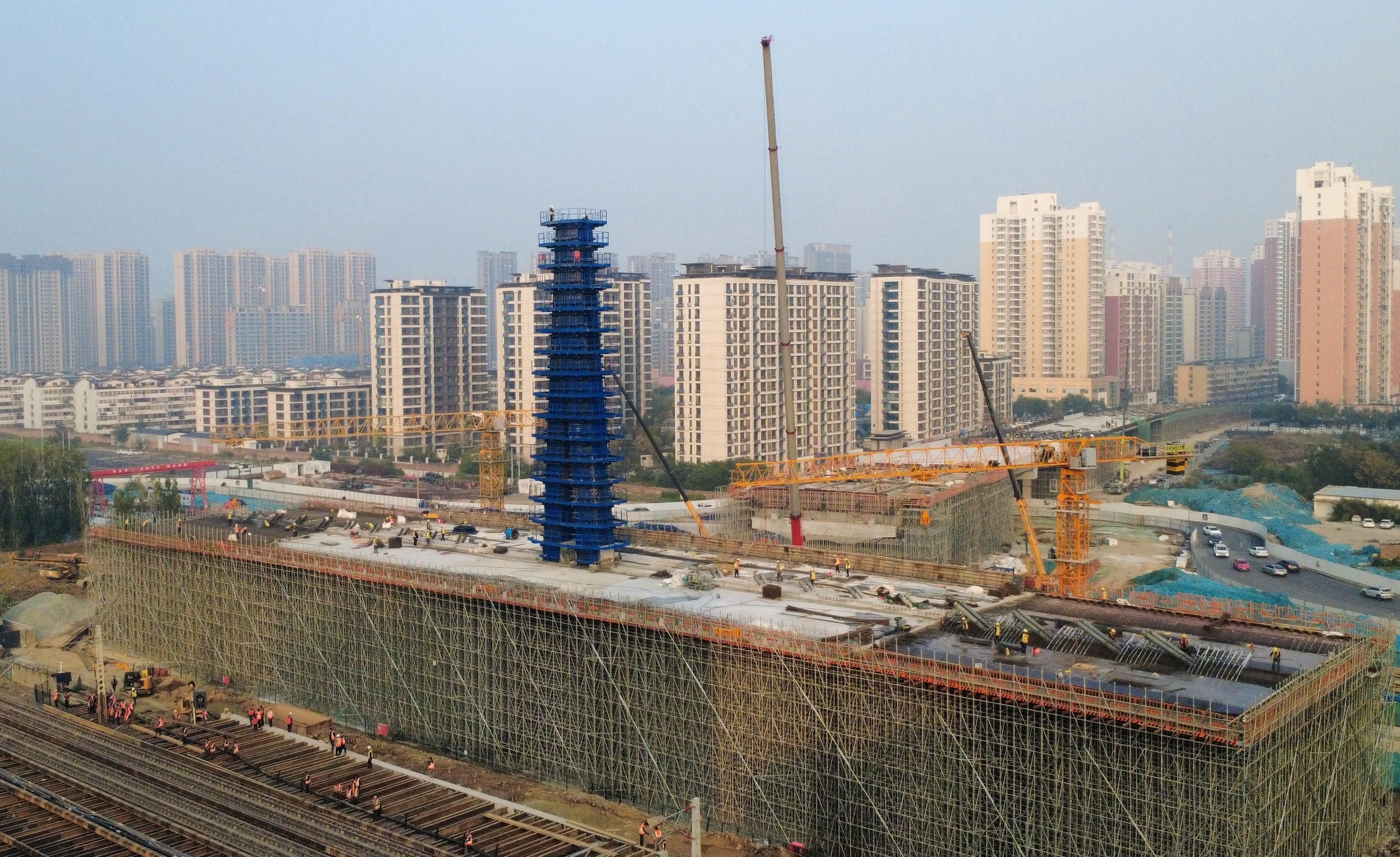 10月31日,中国中铁旗下中铁六局承建的我国首座单索面矮塔曲面菱形塔身斜拉桥——彭家寨乡互联互通项目上跨京广铁路主塔正式封顶。