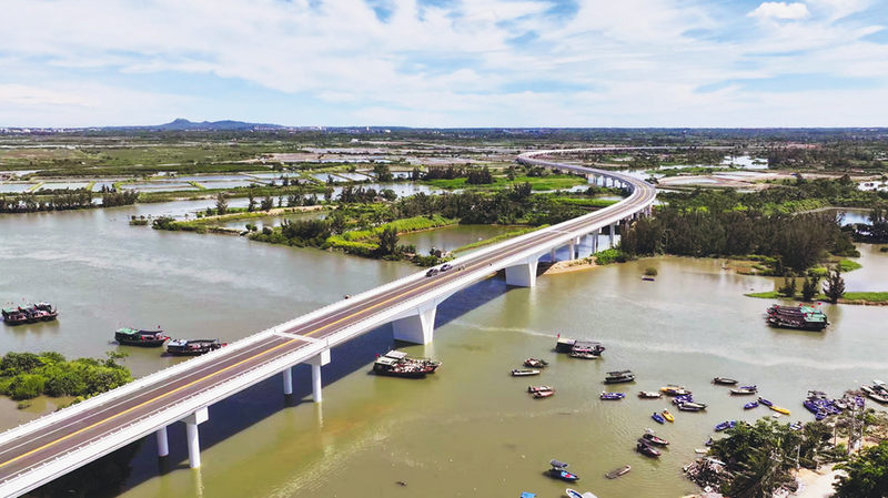 海南环岛旅游公路主线总里程988公里,为“国家海岸一号风景道”。环新英湾支线总长42.75公里,其中新改建段22.46公里。中铁二局承建的北门江特大桥是全线控制性工程,全长2074米,按双向4车道三级公路标准建设,设计时速60公里。作为文化旅游与海岛生态景观的承载体和展示窗口,该项目构建了一条风光旖旎、与自然和谐共生的环形带状绿色旅游景观长廊,为海南西部旅游发展注入了全新动力。杨德山 张海江 李阳 梁晨蕊 摄影报道