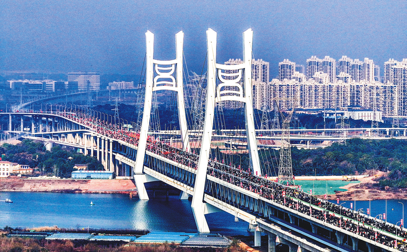 南昌讯 1月4日,中铁大桥局承建、中铁工业旗下中铁九桥负责4.23万吨钢结构制造安装的昌九高铁隆兴大桥(扬子洲赣江公铁大桥公铁合建段)公路部分正式通车。