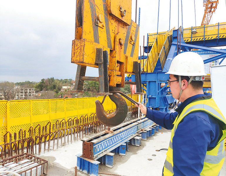 近日,中铁上海局一公司桥梁项目部严格落实复工复产“先排查、后复工”要求,组织专人对各工点关键环节开展认真检查,确保春节长假后施工平稳有序推进。图为检查金华铁路枢纽扩容项目一工区机械设备状态。 冯艳 摄