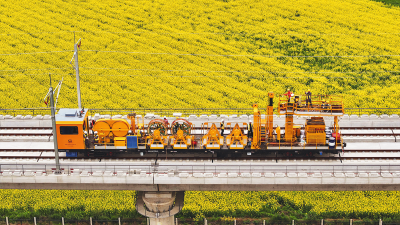 3月28日,(南)昌九(江)高铁庐山南站至共青城东站区间,随着恒张力放线轨道车缓缓启动,中铁武汉电气化局负责的昌九高铁全线接触网架设施工正式拉开帷幕,完成首条接触网导线架设。接触网导线作为列车的直接供电载体,其平直度、张力及空间几何参数直接关系到列车运行状态。通过实时监测并动态调整架线参数,此次架设的导线张力、平直度误差精准控制在0.1毫米内。昌九高铁线路全长138公里,设计时速350公里,全线接触网导线共计335.4公里,预计今年6月份全部架设完成。 陈亚娜 赵薇 摄影报道