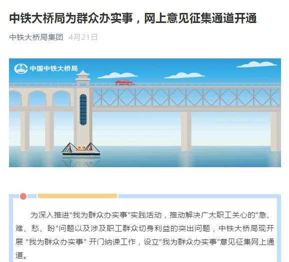 ★中国中铁大桥局开通“我为群众办实事”意见征集线上渠道